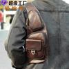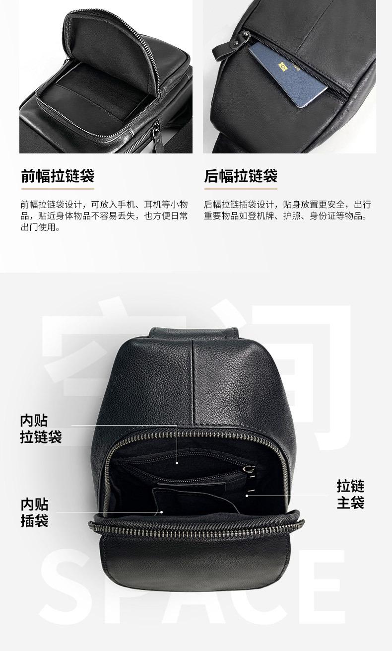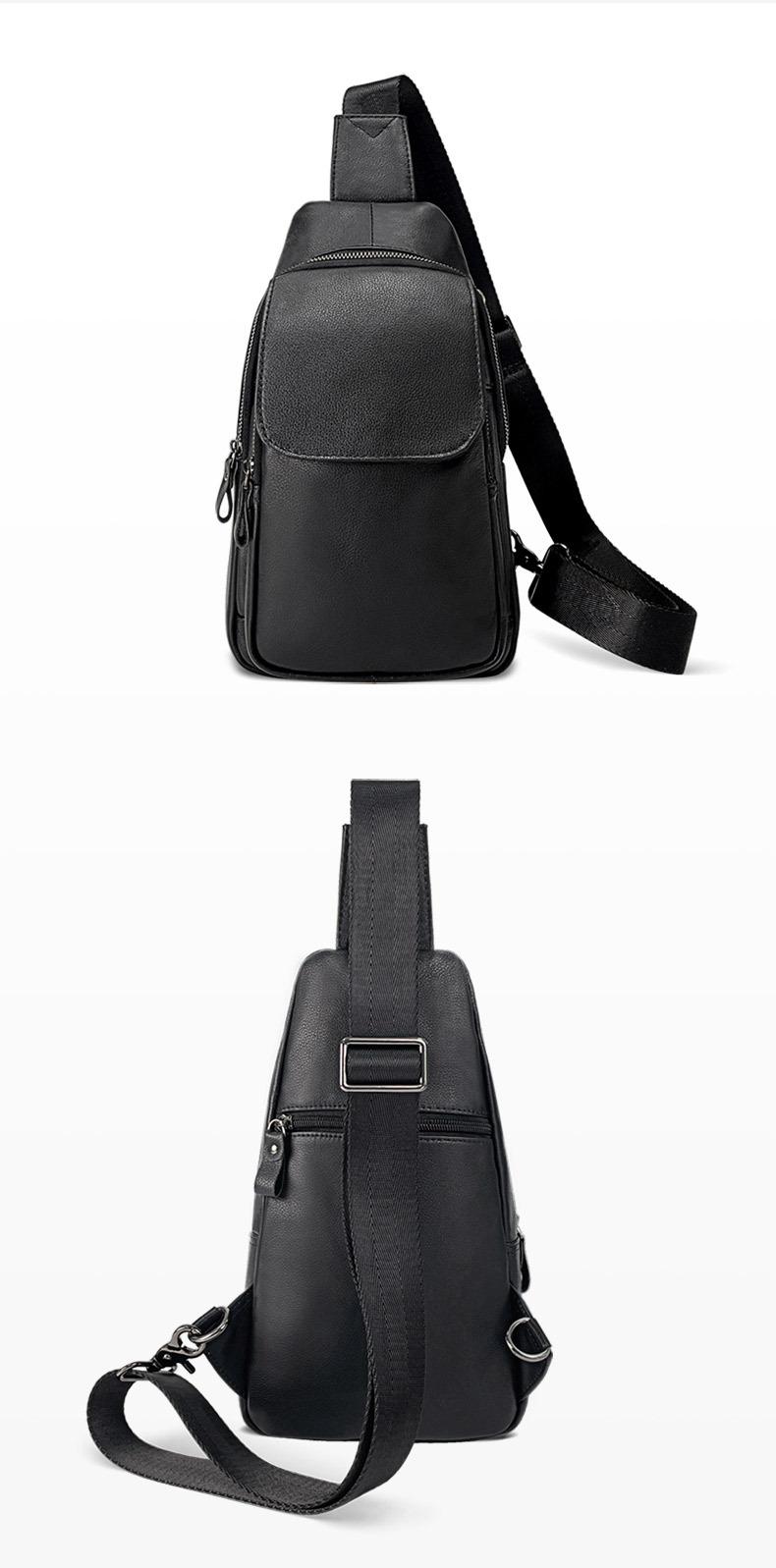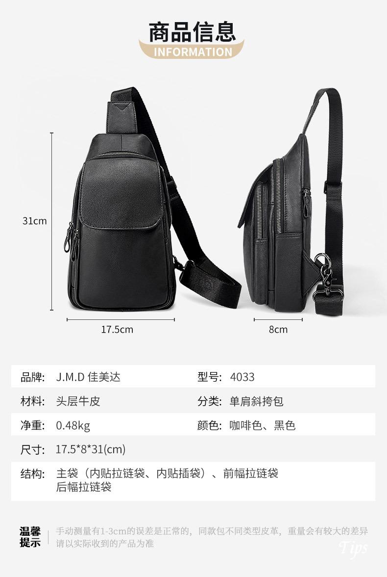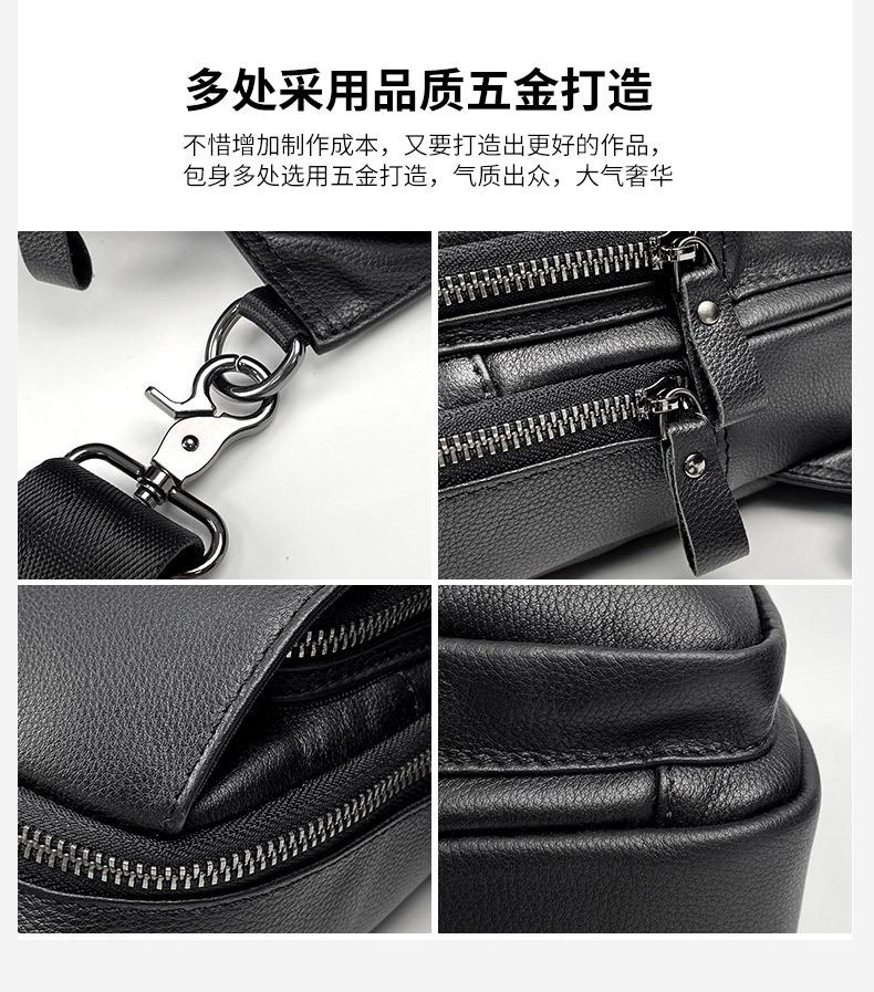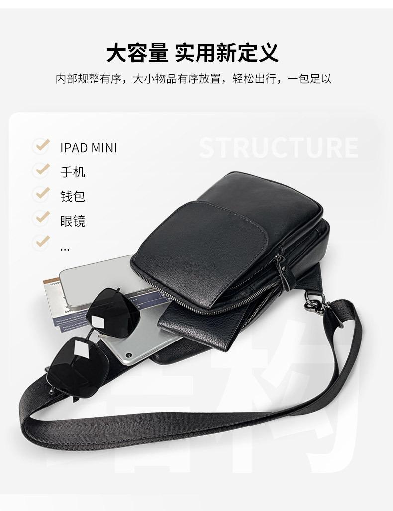 Jiameda Bolso de Pecho de Cuero Genuino para Hombre Bolso Mensajero de Alta Gama Bolso Cruzado Casual para Exterior Bolso de Pecho de Cuero Vacuno de Capa Superior