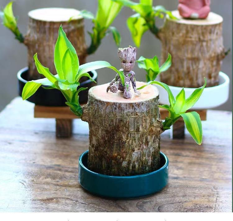 Madera Brasileña Lucky Wood Groot Planta Verde en Maceta Árbol Pequeño Hombre con Brotes Planta Hidropónica de Interior que es Fácil de Cultivar en Todas las Estaciones
