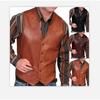 Chaleco para hombre Amazon comercio exterior primavera y verano nuevo cuero PU retro color sólido solapa un solo botón chaleco de motocicleta para hombre