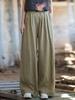 Pantalones de Algodón y Lino Frescos de Verano 2025 Talla Grande Pantalones Casuales Literarios Cintura Elástica Diseño de Pantalones con Bolsillo de Solapa para Mujer
