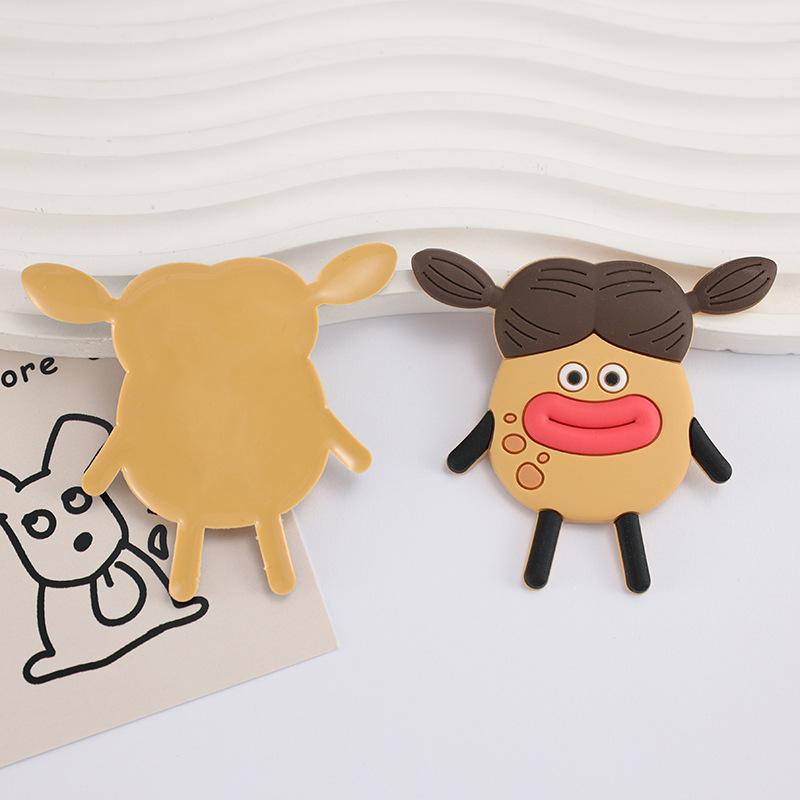 Soft glue: brown big eye potato girl 6.1x6.6cm, Soft glue: brown big mouth potato girl 6.1x6.6cm, Soft: brown ...
