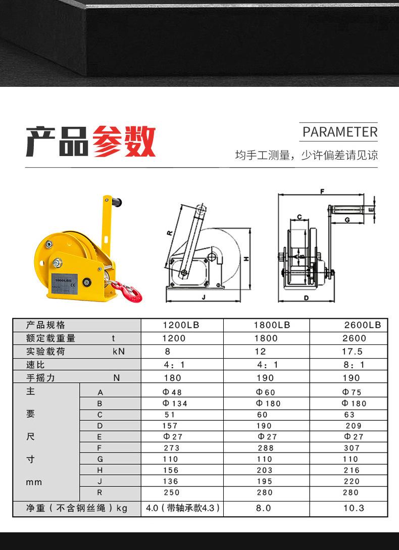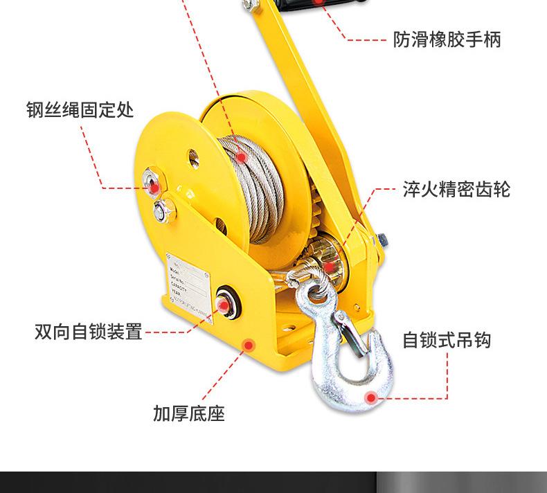 Cabrestante al por mayor del fabricante con operación manual autoblocante bidireccional, 1200 libras Pequeña grúa de tracción y elevación para el hogar Cabrestante operado a mano