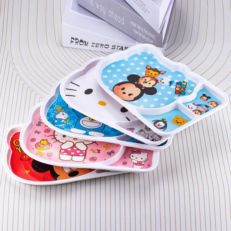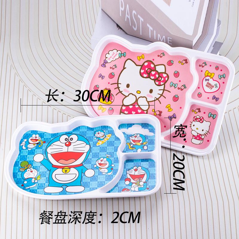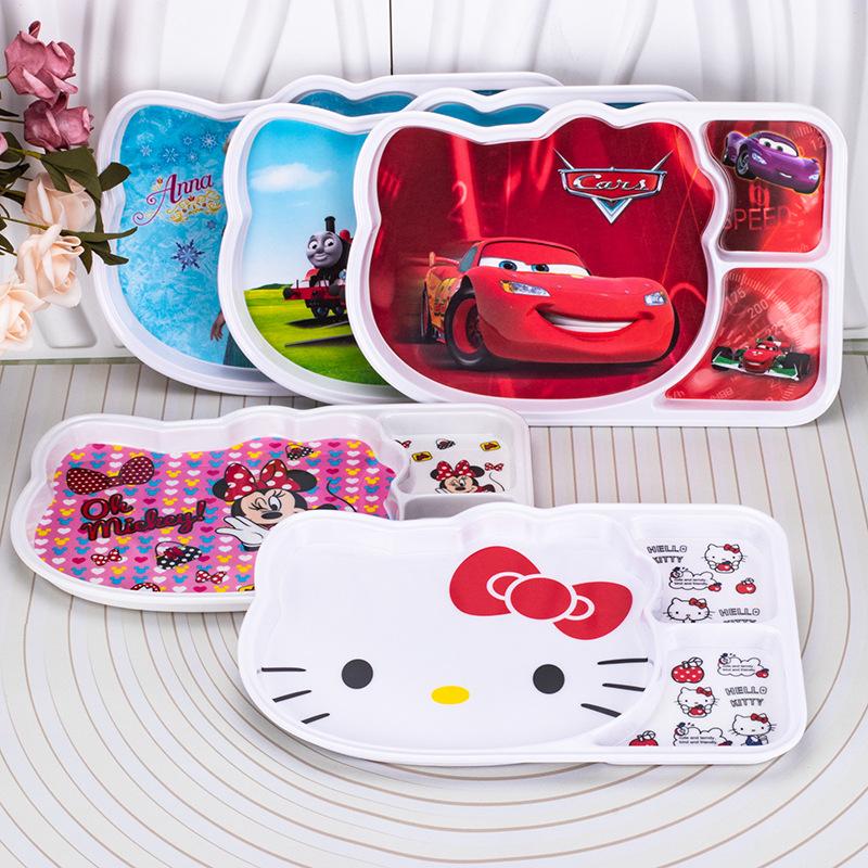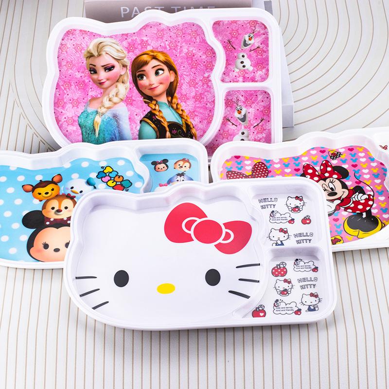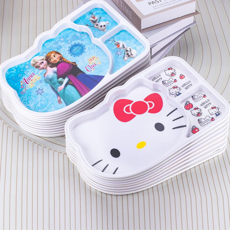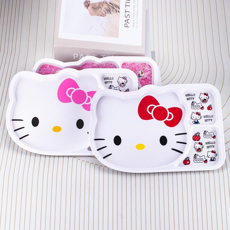 Plato de cena para niños con dibujos animados, bonito plato para bebé, resistente a caídas, con forma de gato Kt, cuchara, alimento complementario para bebés que aprenden a comer.