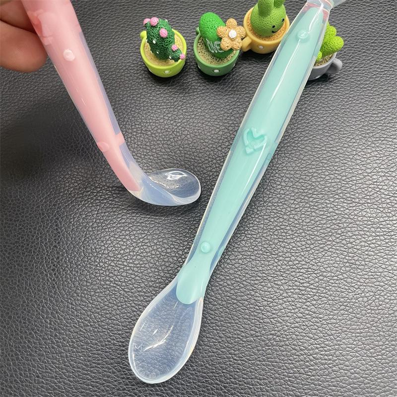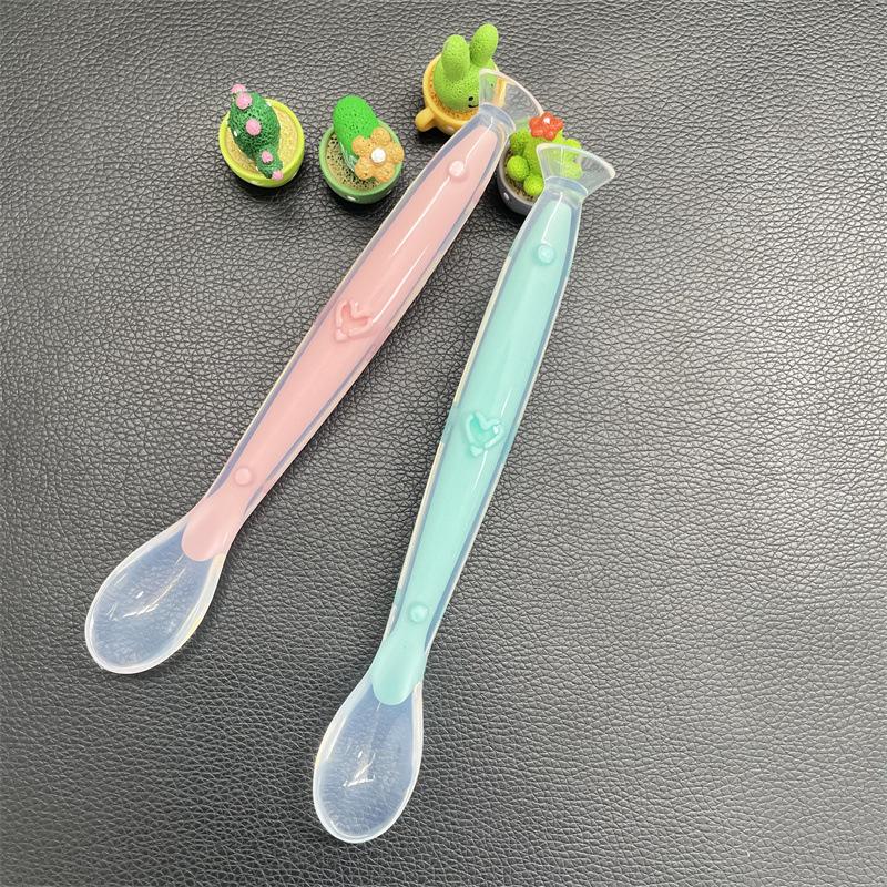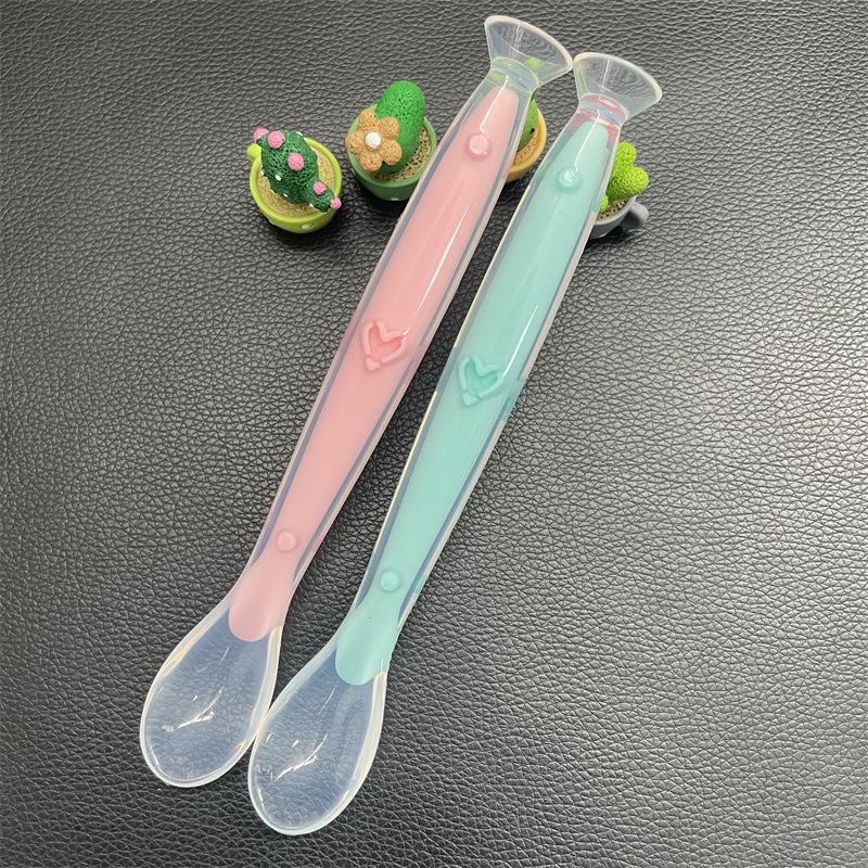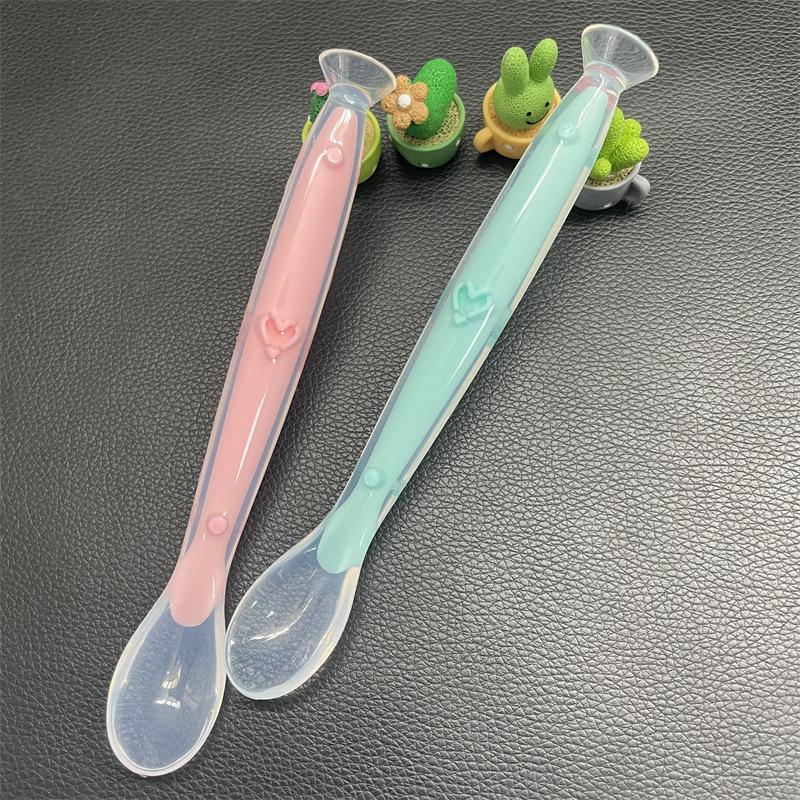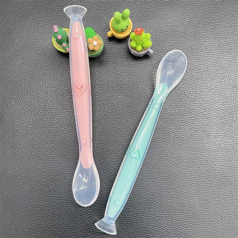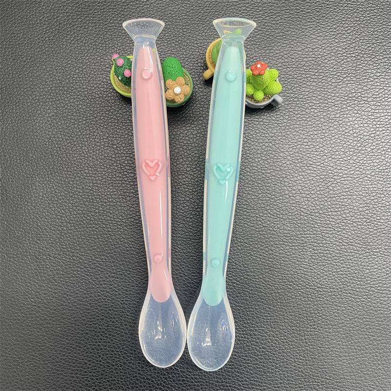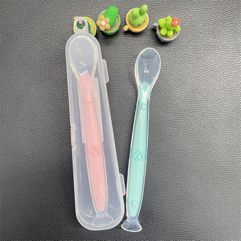 Pink soft spoon with suction cup for free storage box, Blue soft spoon with suction cup for free storage box