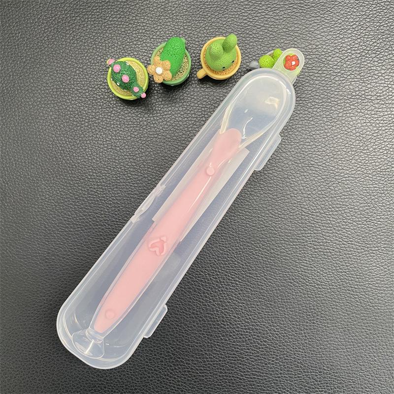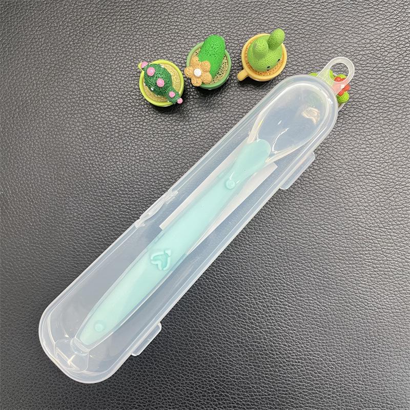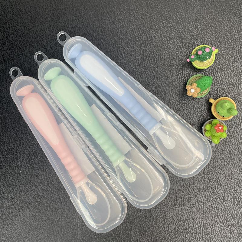 Cuchara para bebé de silicona suave de cabeza completa con caja de almacenamiento con ventosa cuchara vajilla para alimentación de bebé