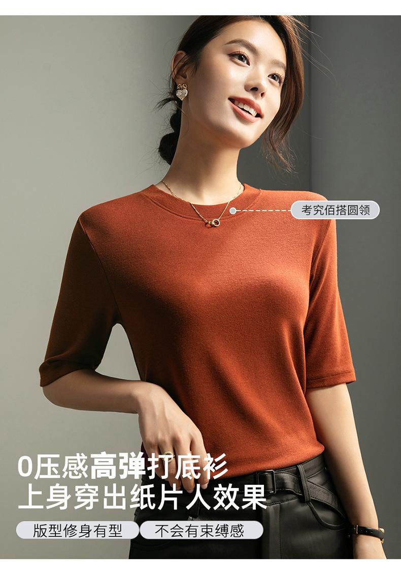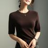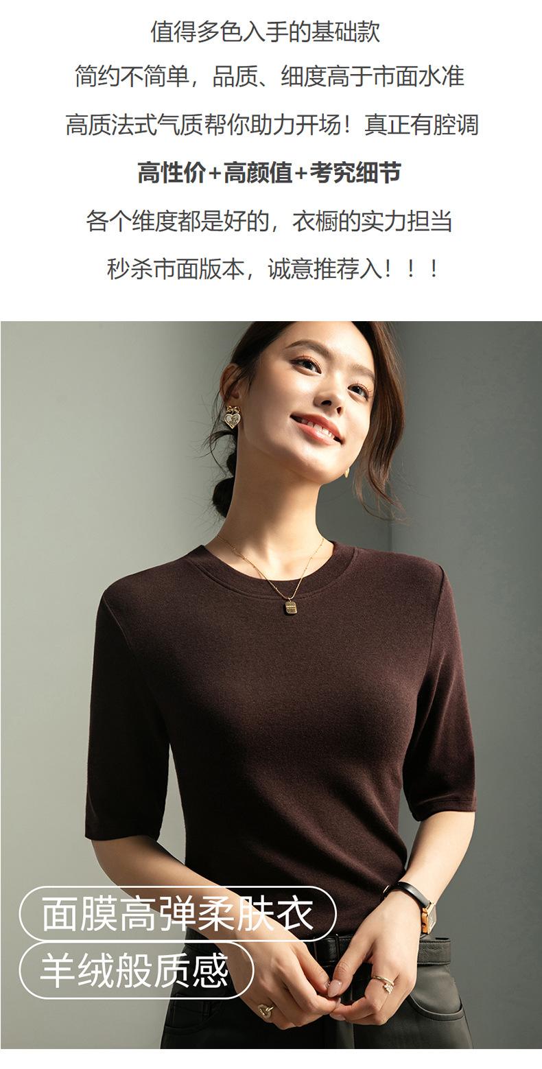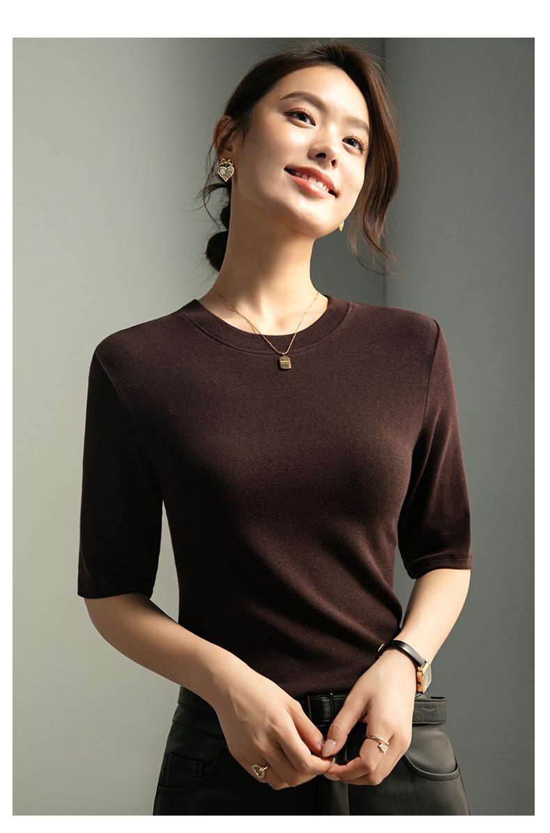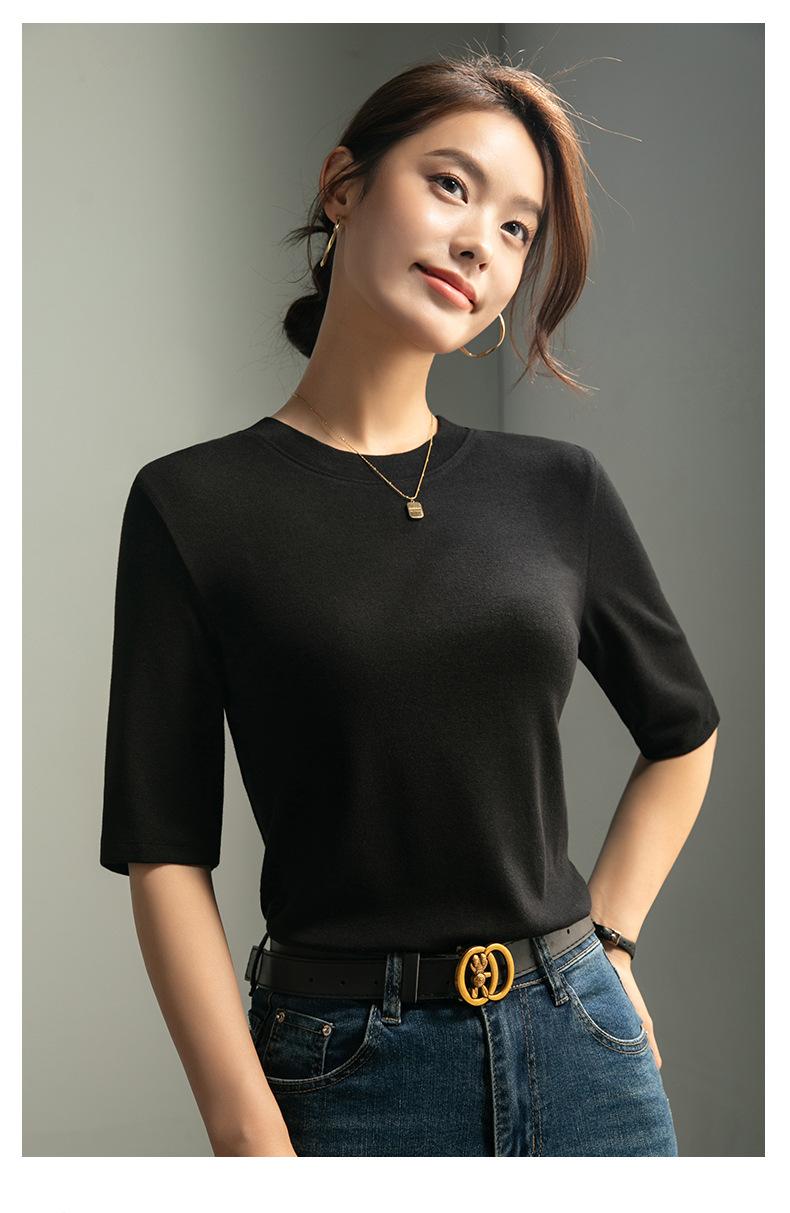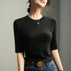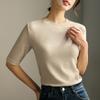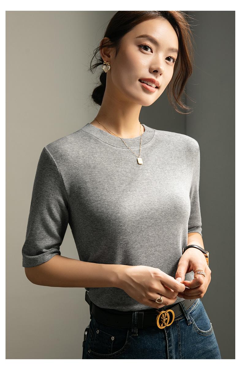 Playera de Cuello Redondo y Manga Media para Mujer, Ropa Interior de Primavera de Manga Media, Camiseta Básica de Manga Tres Cuartos, Nuevo Estilo 2025, Hombro Regular, Top Ajustado
