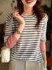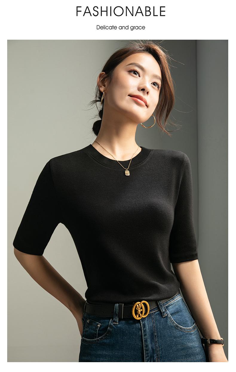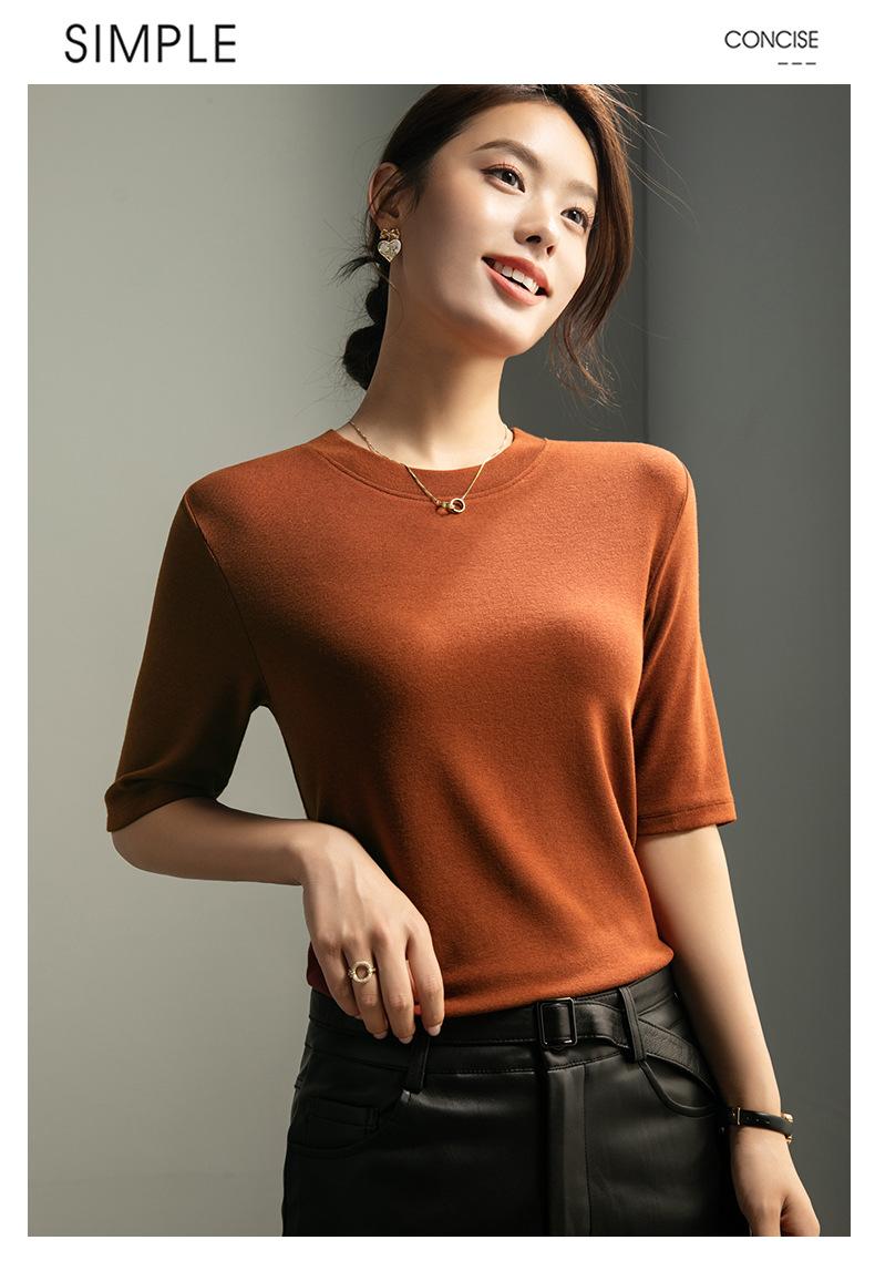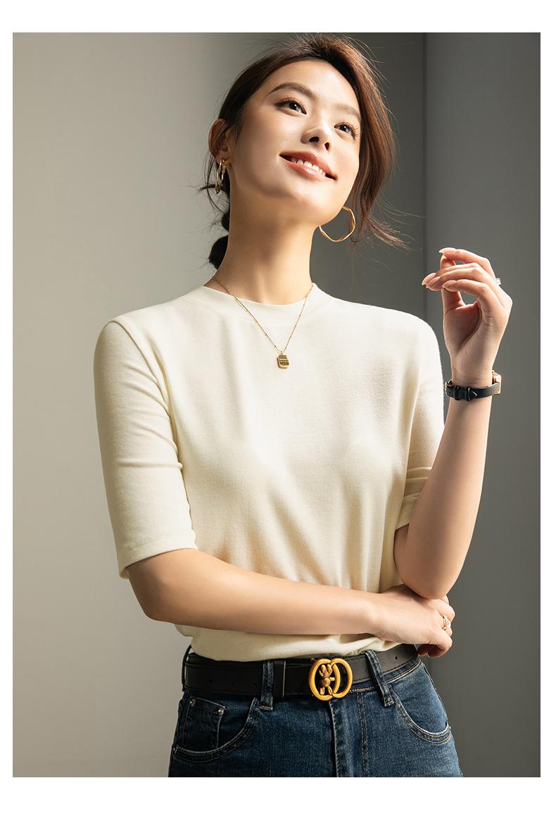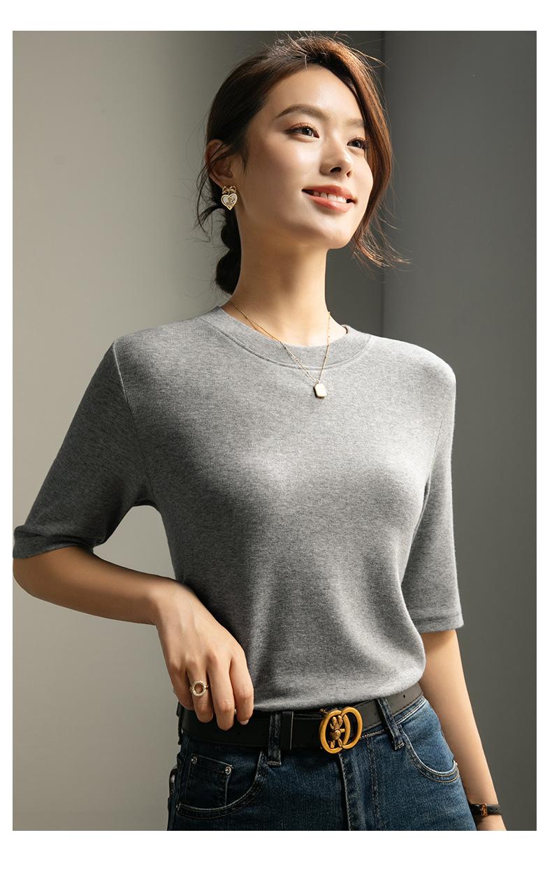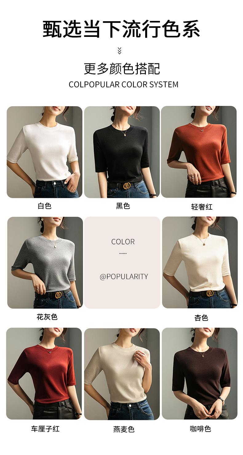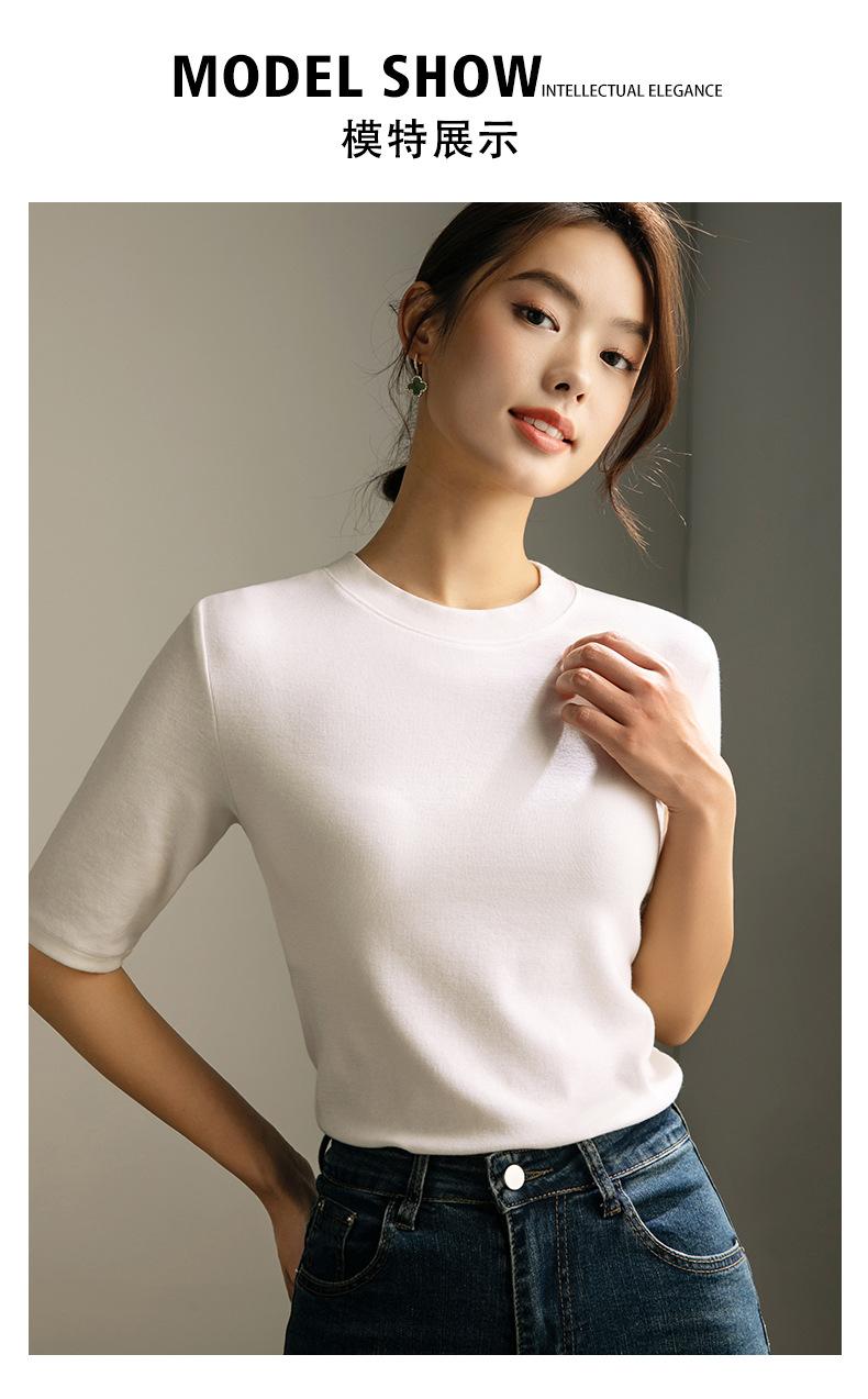 Playera de Cuello Redondo y Manga Media para Mujer, Ropa Interior de Primavera de Manga Media, Camiseta Básica de Manga Tres Cuartos, Nuevo Estilo 2025, Hombro Regular, Top Ajustado
