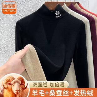 Capa Base de Lana y Seda para Mujer 2025 Otoño/Invierno Nueva Ropa de Mujer Capa Interior Top Cálido Engrosado Camiseta de Forro Polar para Mujer de Mujer