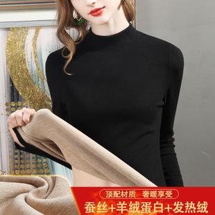 Lana Seda Capa Base Mujer 2025 Otoño/Invierno Nueva Ropa de Mujer Ropa Interior Generadora de Calor Cálida Top de Cuello Alto Espesado con Forro Polar