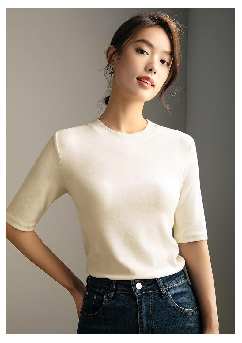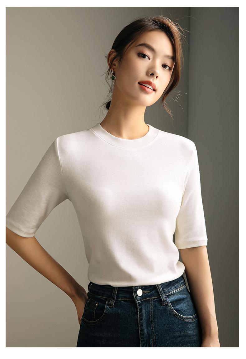 Camisa de cuello redondo para mujer, ropa interior, ropa de mujer, principios de otoño 2025, camiseta blanca de manga larga de moda, top de cachemira sintética para mujer, ropa exterior