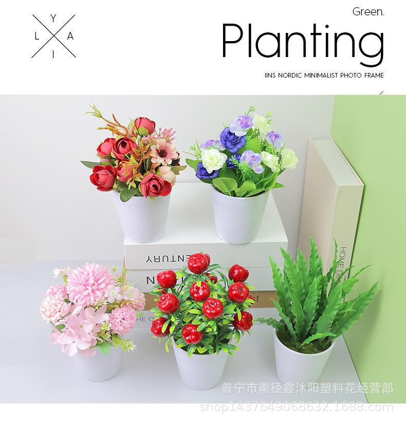 Flor Artificial Planta Verde Pequeños Adornos Interior Hogar Plástico Flor Falsa Planta en Maceta Decoración Sala de Estar Decoración Floral Bonsái Ramo de Flores