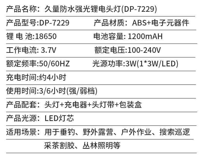 Faro LED 7229 de larga duración, potente, para pesca nocturna, para exteriores, resistente al agua, recargable, con batería de litio, para minero y camping.