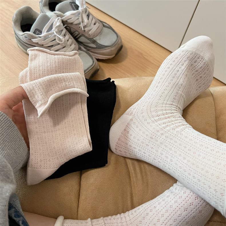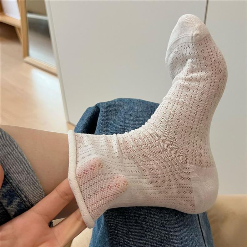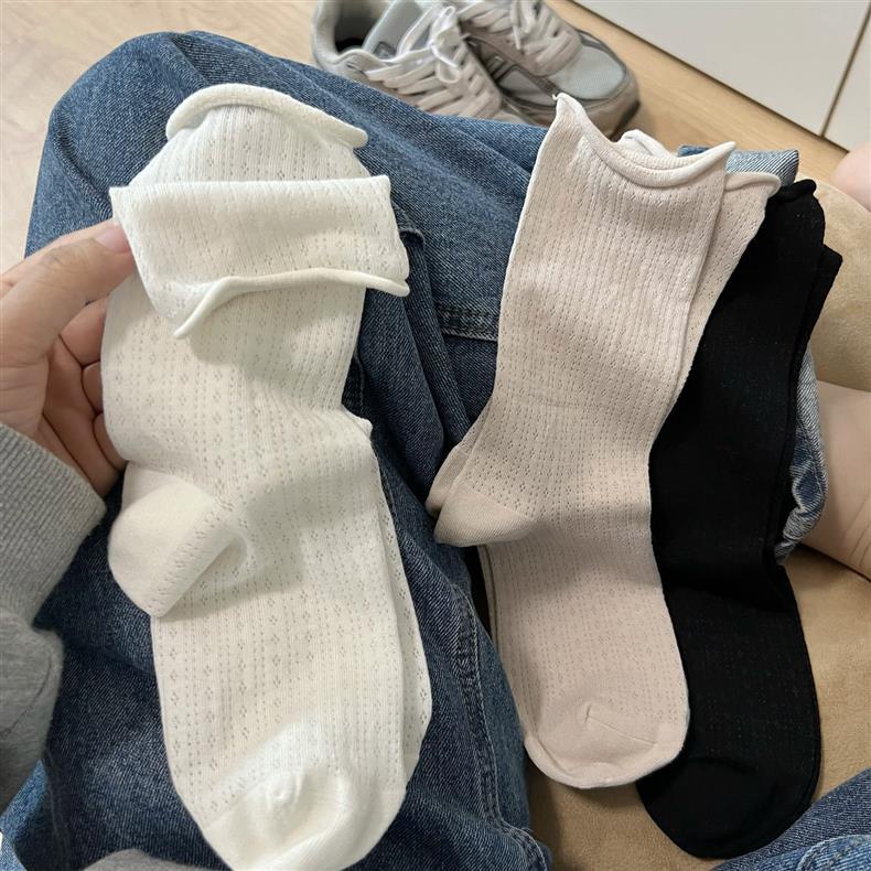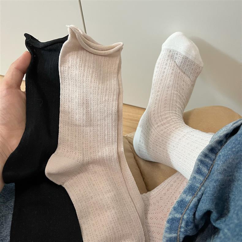 Calcetines Finos de Primavera y Verano para Mujer, Calcetines de Algodón Transpirables de Malla, Color Puro, Calcetines a Media Pantorrilla, Calcetines de Felpa, Calcetines de Confinamiento, Calcetines Simples para Mujer, Verano