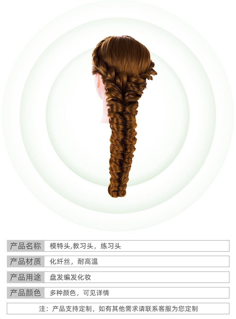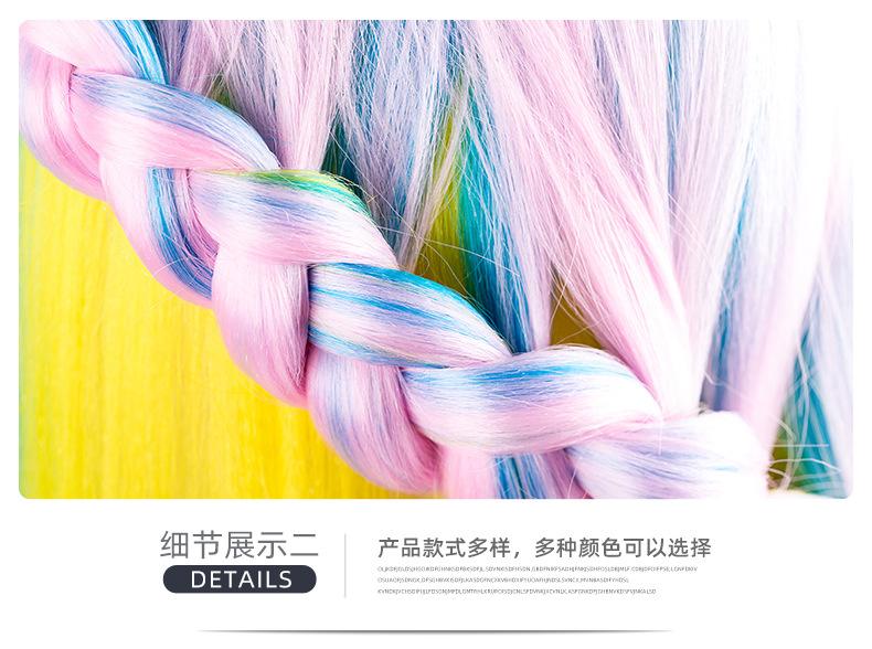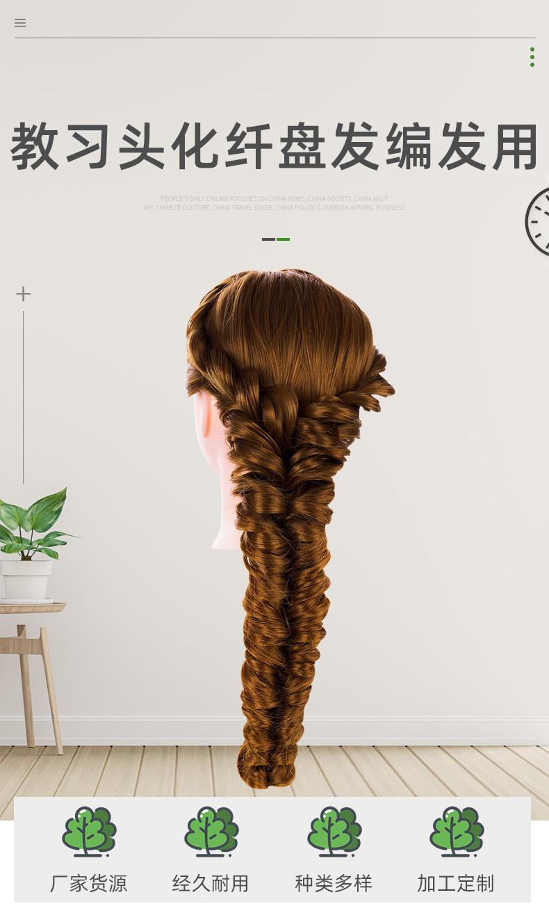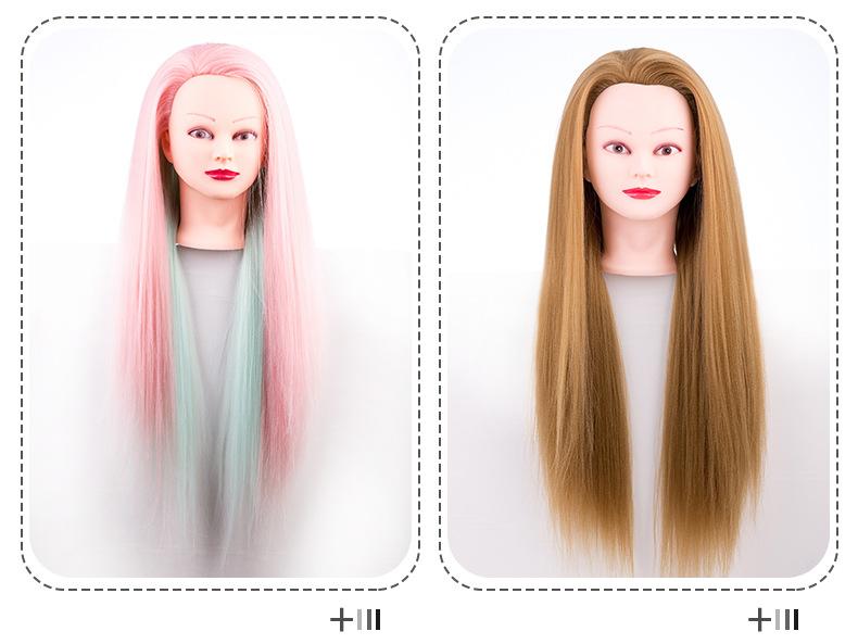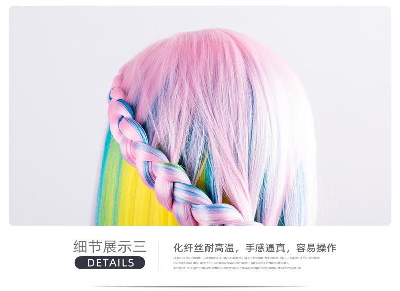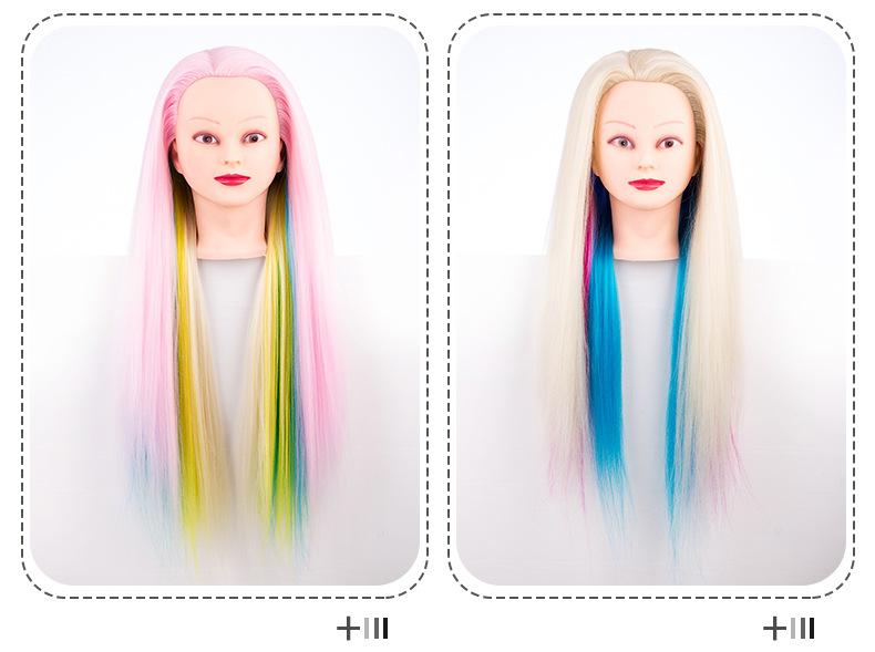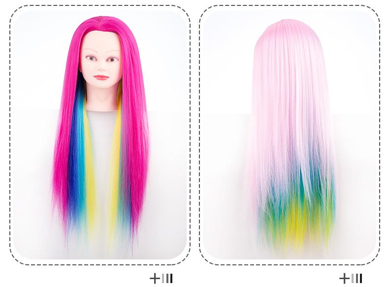 Cabeza de modelo, cabeza de modelo de enseñanza, bobina de fibra química, trenza de cabello con peluca de práctica multicolor, venta al por mayor