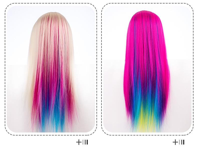 Rose red four-color straight hair, Pink two-color straight hair, golden straight hair, dark brown straight hai...
