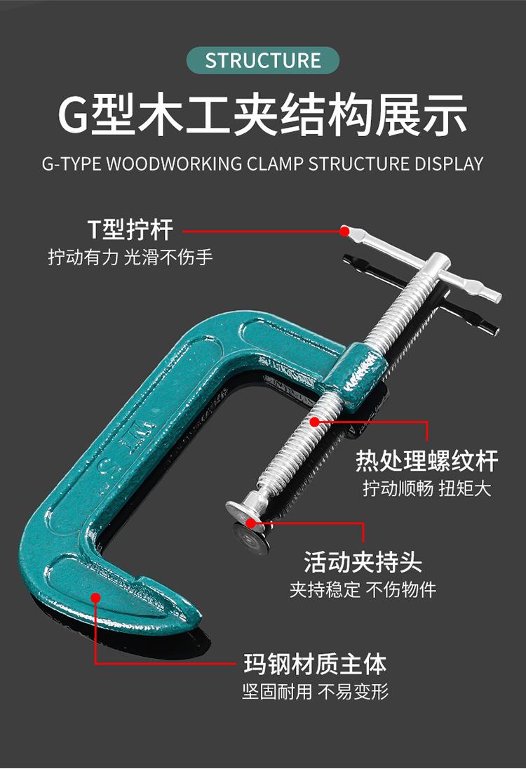 Abrazadera G de alta resistencia, abrazadera C, abrazadera de hierro, abrazadera F, abrazadera de fijación para tableros de madera, accesorios para carpintería, abrazadera F, herramientas