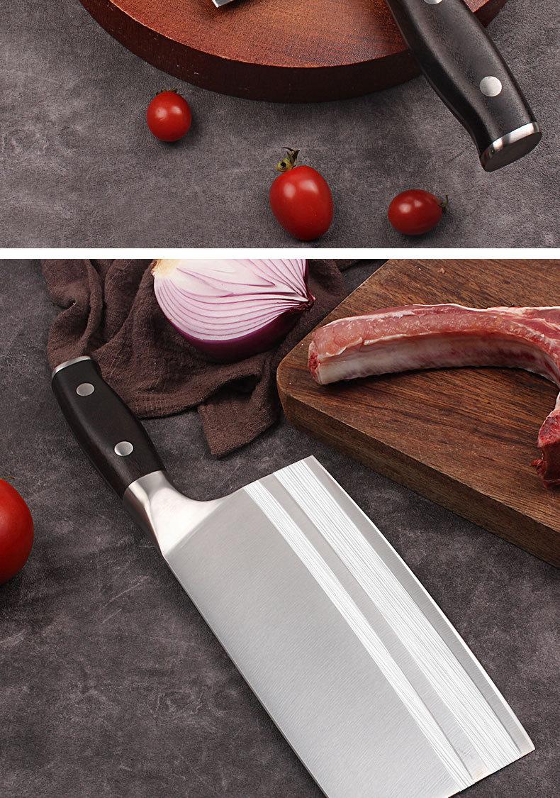 Cuchillo de cocina de acero inoxidable, cuchillo para picar afilado, cuchillo de corte súper rápido, cuchillo para picar de madera carbonizada, cuchillo para picar, cortador de acero inoxidable