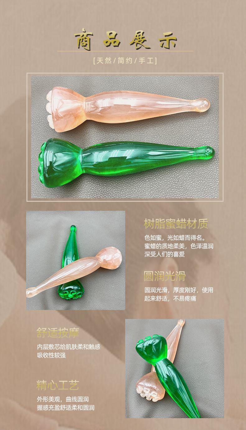 Resina Cera de Abejas Palo de Masaje Grande con Forma de Loto para Masaje de Acupuntos Faciales, Herramienta Gua Sha para Desbloquear Meridianos