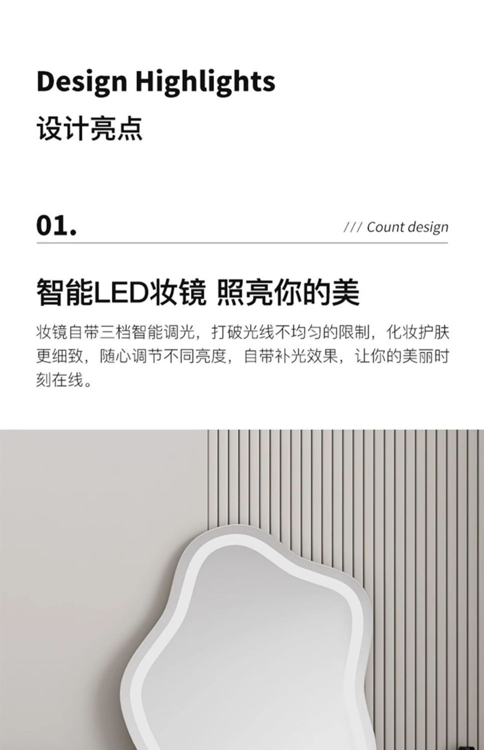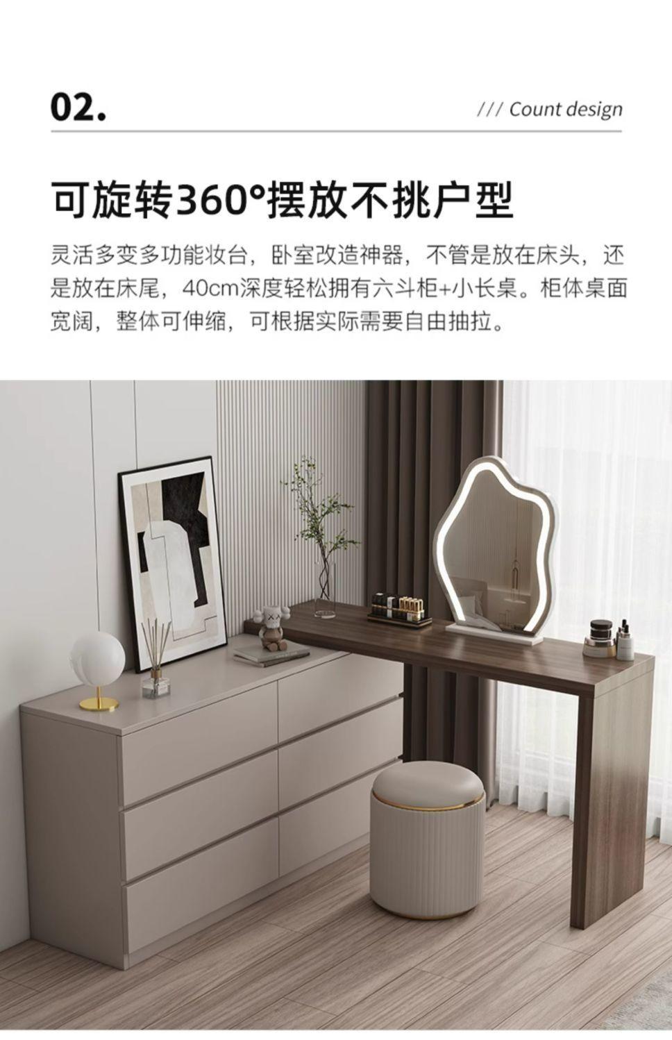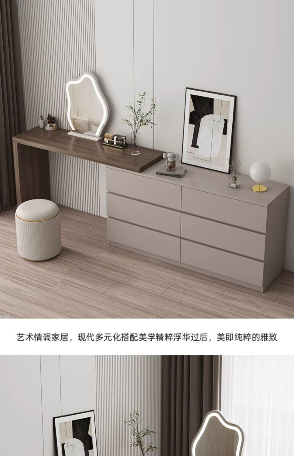 Tocador Dormitorio Simple Moderno Gabinete Cubo Integrado Luz Lujo Gabinete de Almacenamiento Escritorio Apartamento Pequeño Mesa de Maquillaje Retráctil