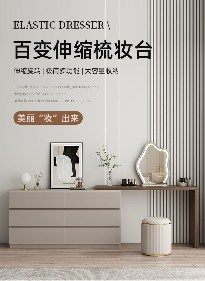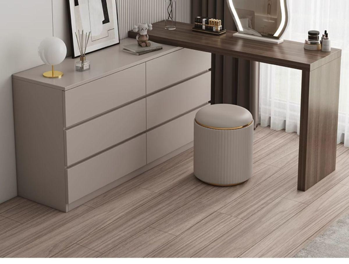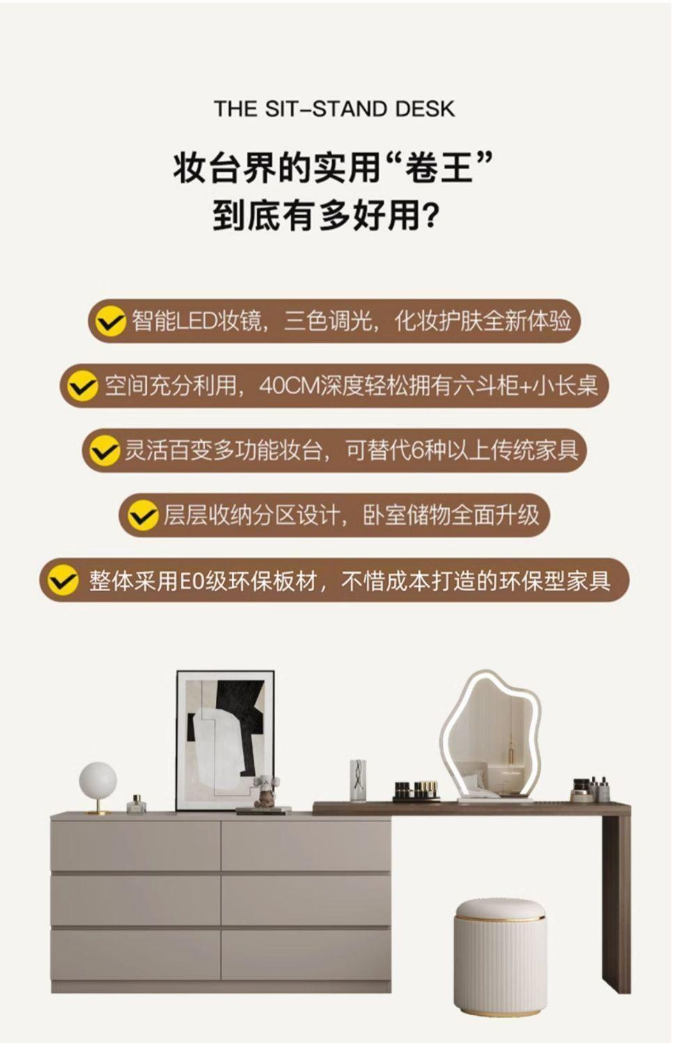 Tocador Dormitorio Simple Moderno Gabinete Cubo Integrado Luz Lujo Gabinete de Almacenamiento Escritorio Apartamento Pequeño Mesa de Maquillaje Retráctil