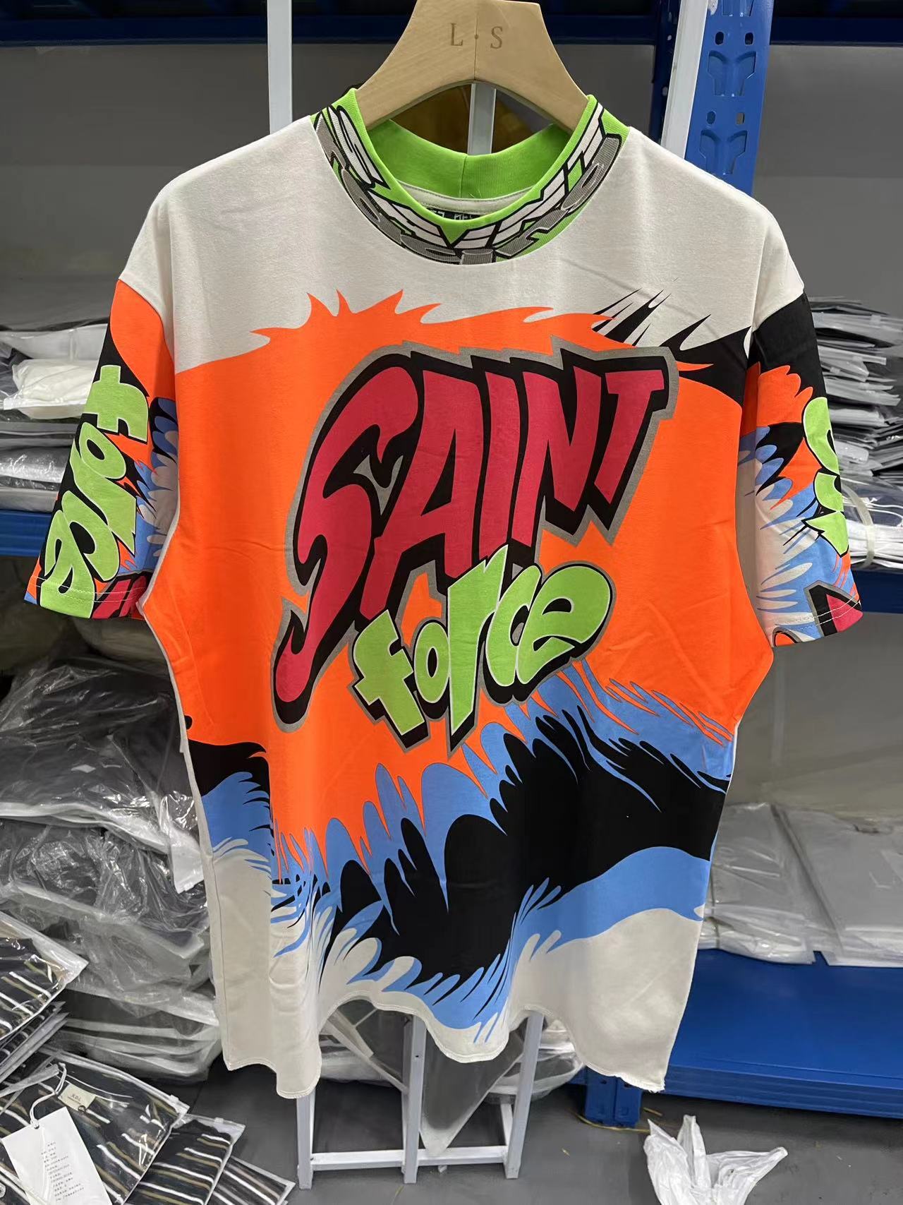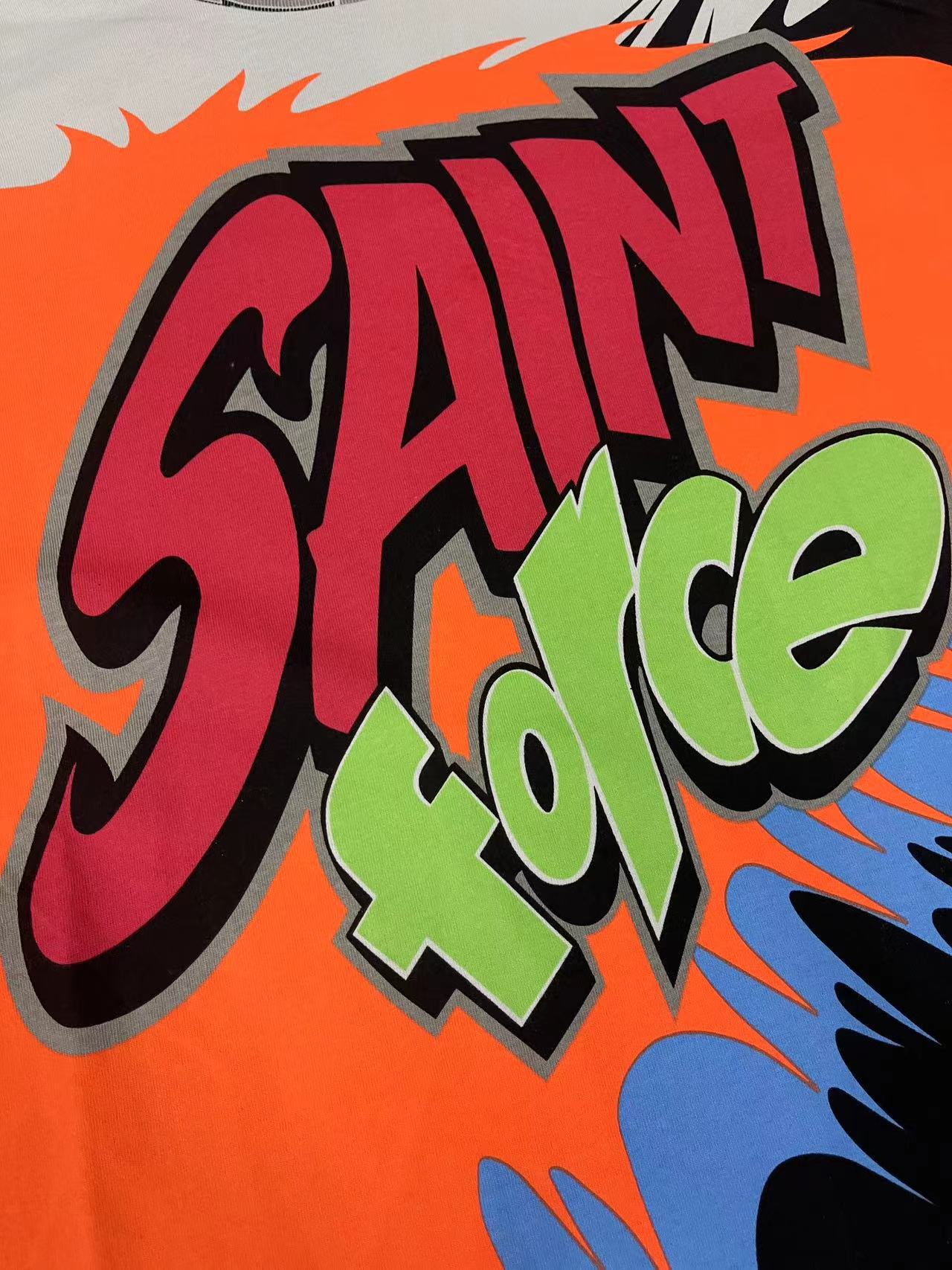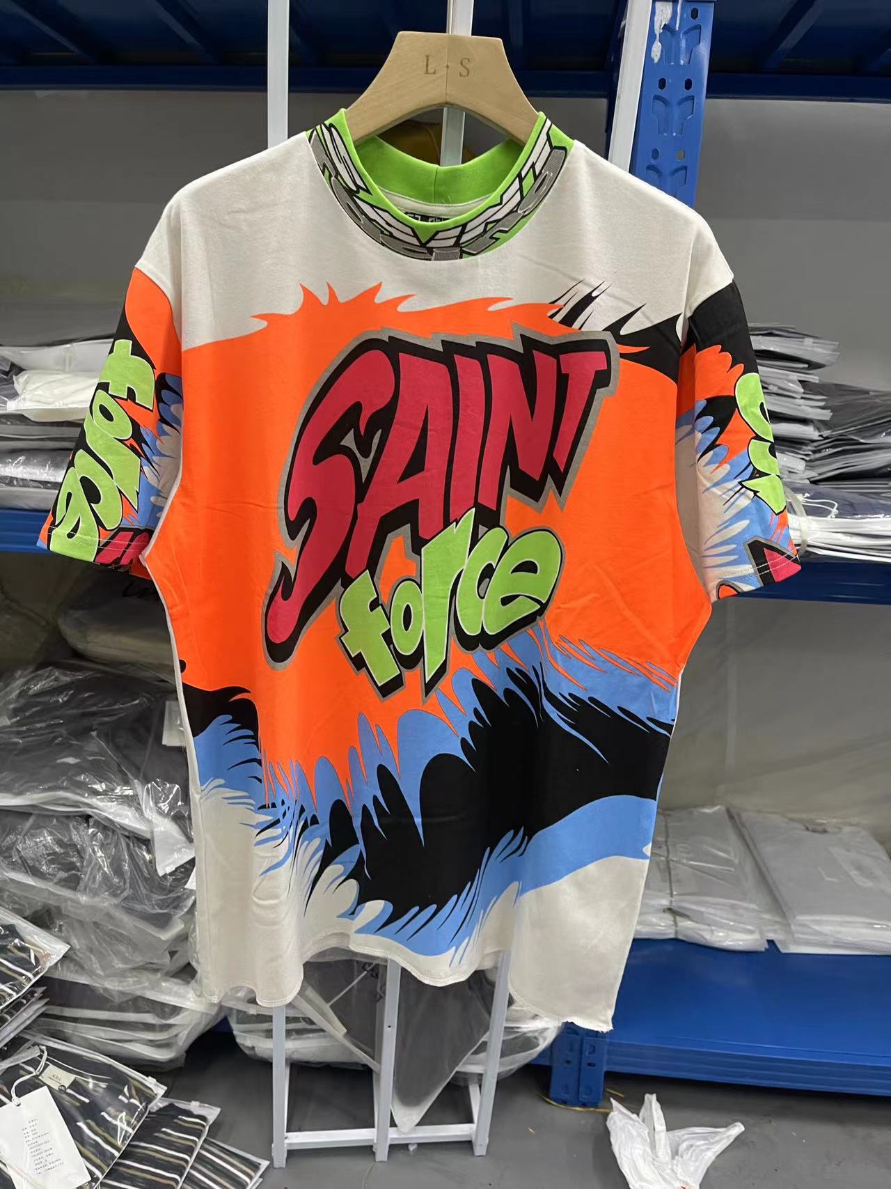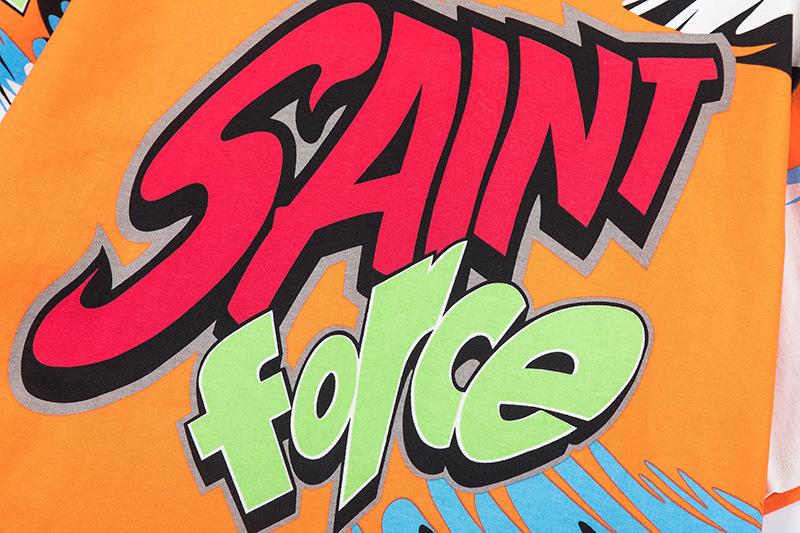 Camiseta de manga larga Saint Micheal force graffiti estilo retro de carreras camiseta de manga corta con graffiti