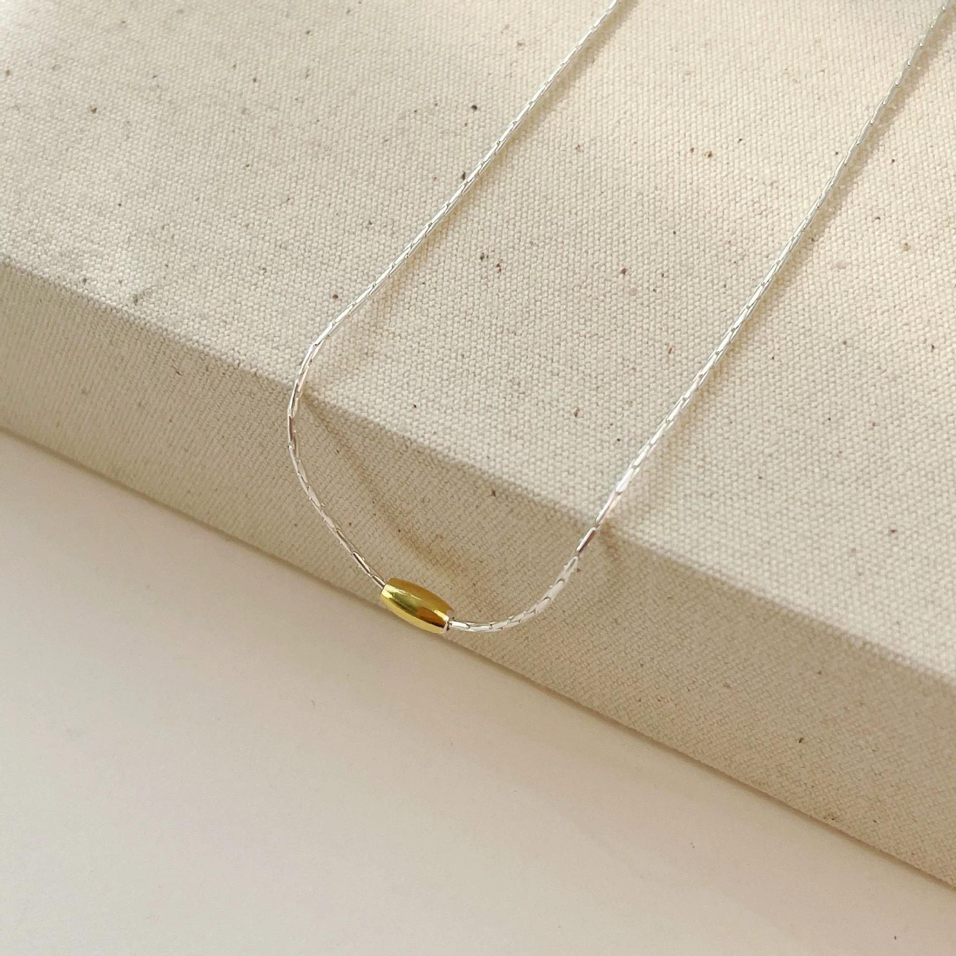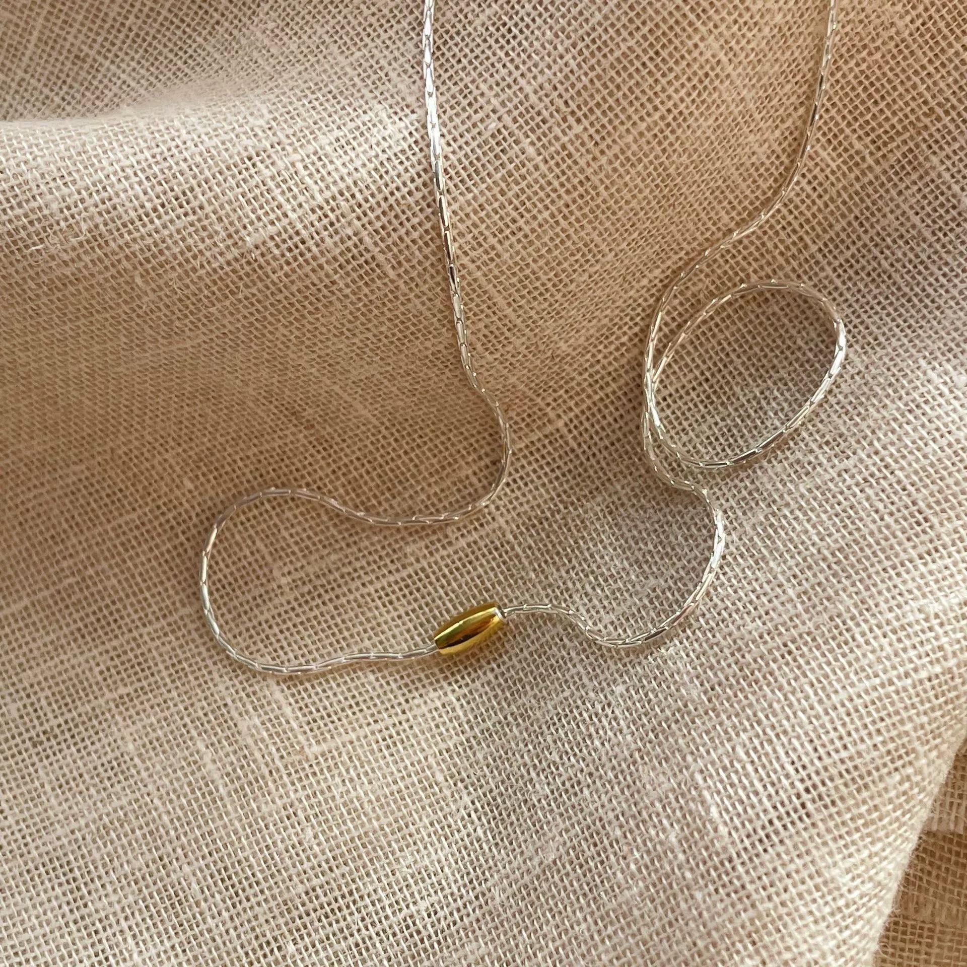 Bean necklace (silver part 18k gold), Olive bead necklace (silver)
