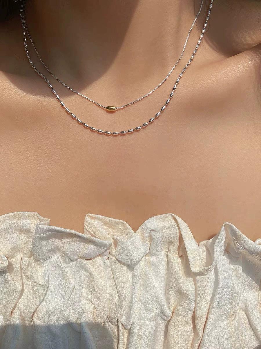 Collar de plata esterlina s925, sencillo, ligero, de lujo, con diseño de nicho, temperamento, cuentas de oliva a juego, cadena de clavícula femenina, venta al por mayor