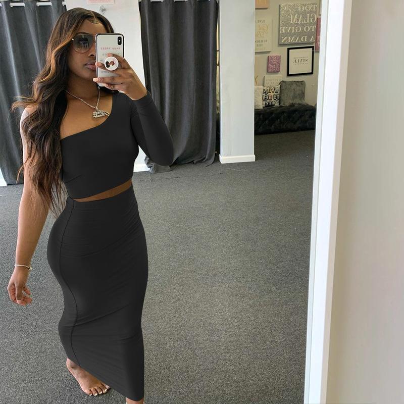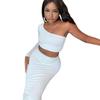 Traje informal de dos piezas de moda de comercio exterior europeo y americano para mujer, con un solo hombro, top corto y falda ajustada hasta la cadera, 2020