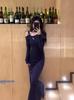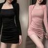 Vestido de manga larga ajustado elegante con falda a la cadera para chica sexy de moda de otoño 2023, ropa de mujer