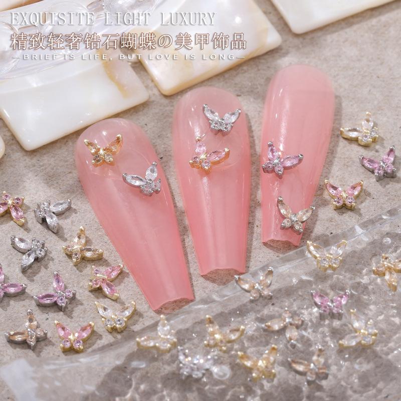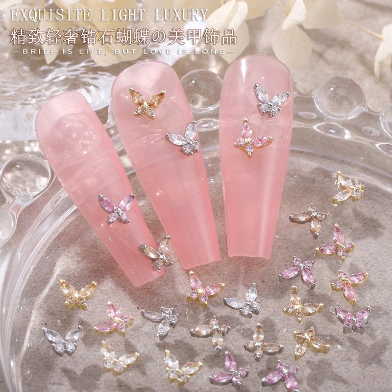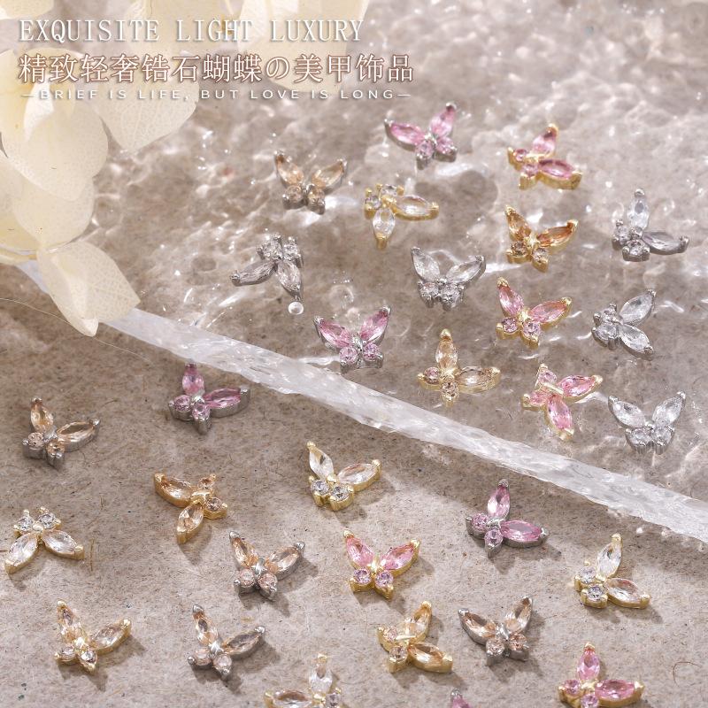 Accesorios de Moda para Uñas Mariposa Mini Zircón Marquesa Metal Incrustado Zircón Lujo Ligero 3D Mariposa Joyas para Uñas