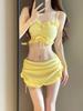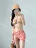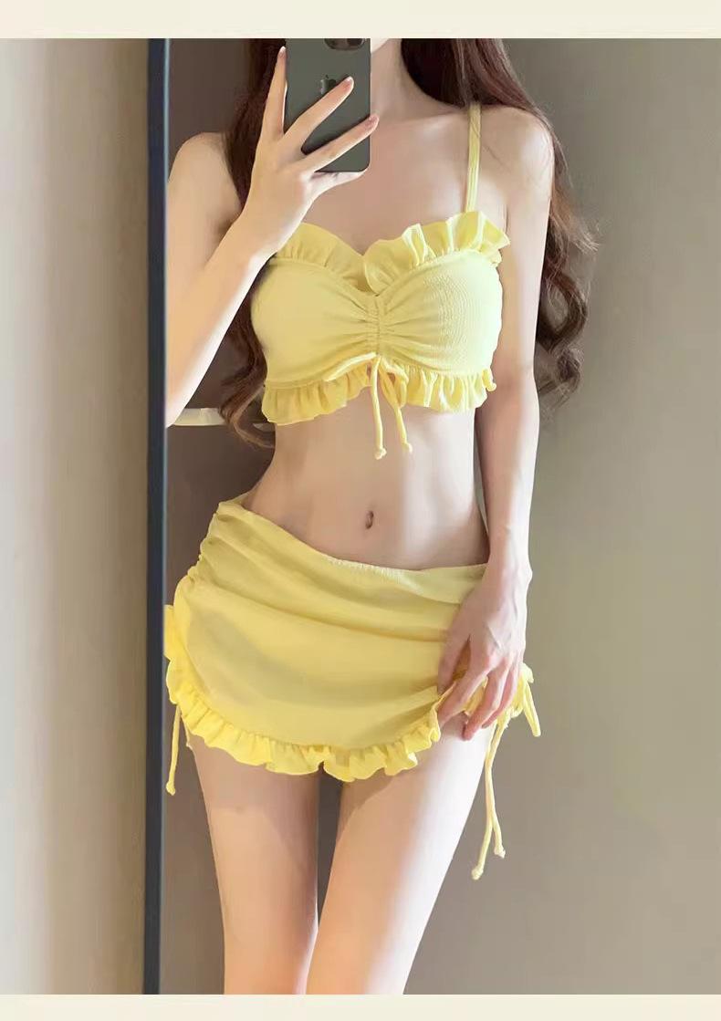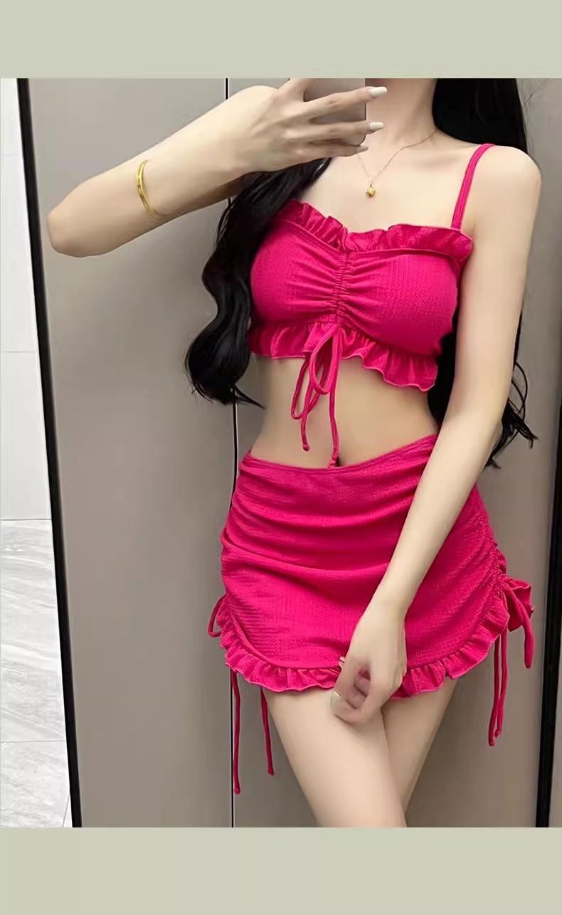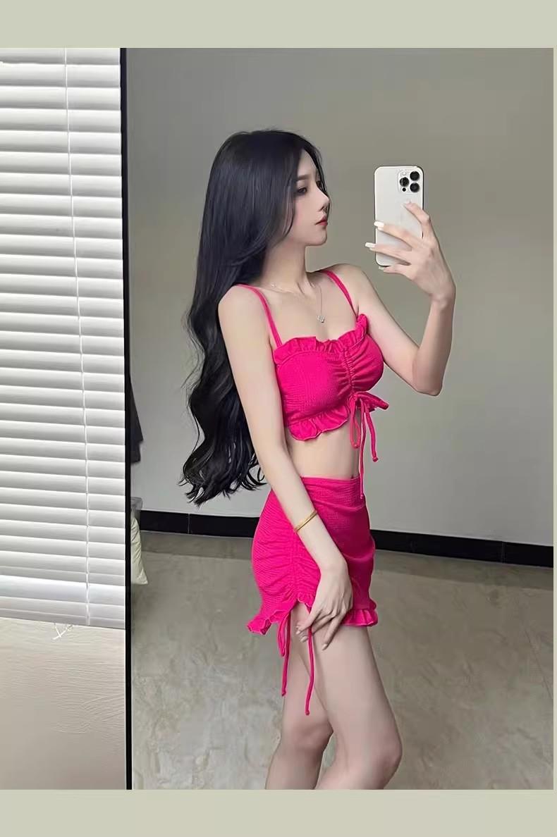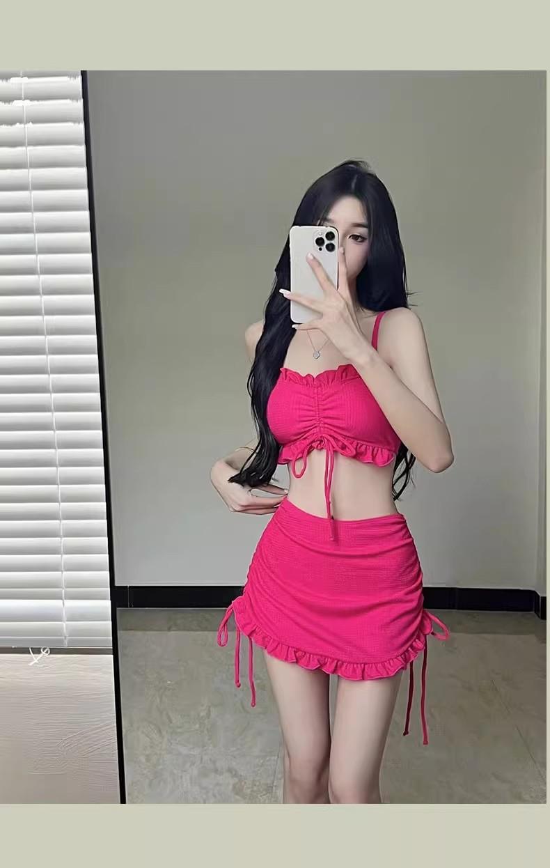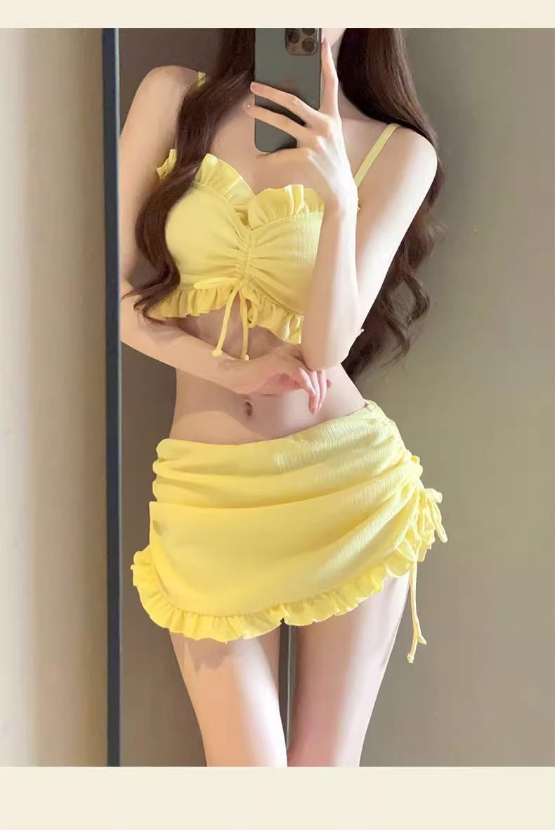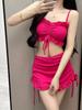 Traje de baño de bikini para mujer, verano 2024, nuevo, falda blanca ajustada, fruncido, vacaciones en la playa, sexy, dividido, conjunto de tres piezas