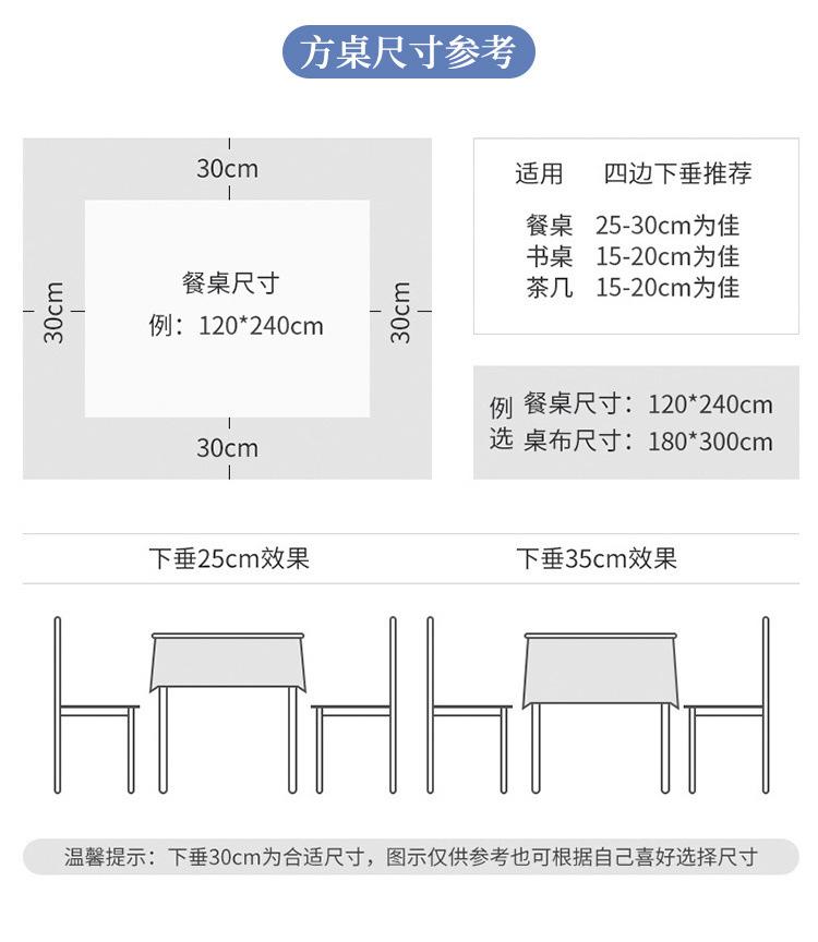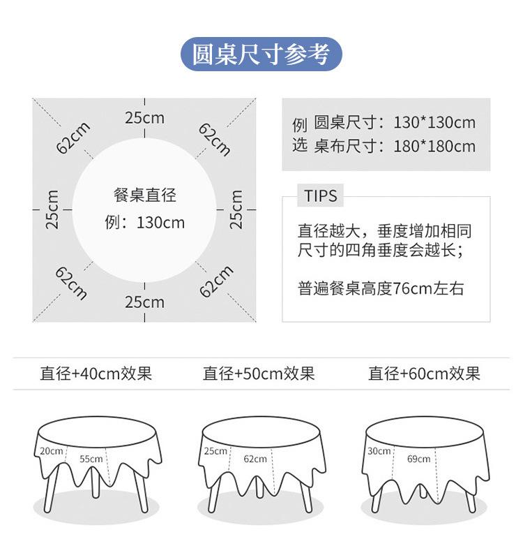 90*90cm [suitable for bedside table/small round table]], 90*120cm "suitable for small coffee table], 90*150cm ...