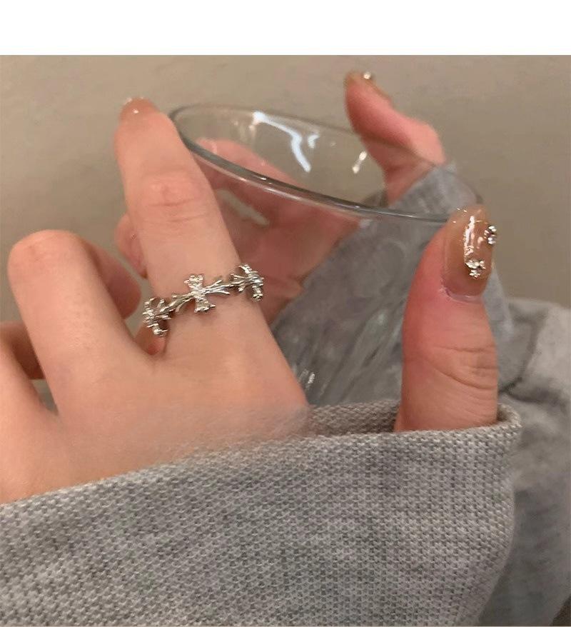 Anillo cruzado de circonita plateada de estilo moderno, diseño de nicho femenino, anillo de dedo índice de lujo ligero, anillo abierto personalizado