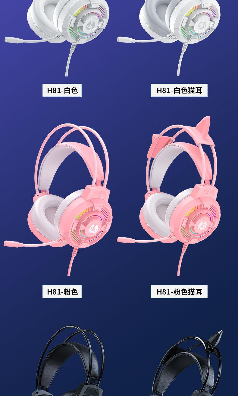 H81-White, H81-white cat ears, H81-Black, H81-black cat ears, H81-Pink, H81-pink cat ears