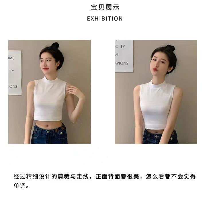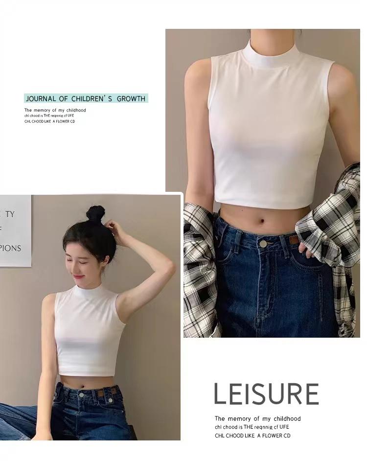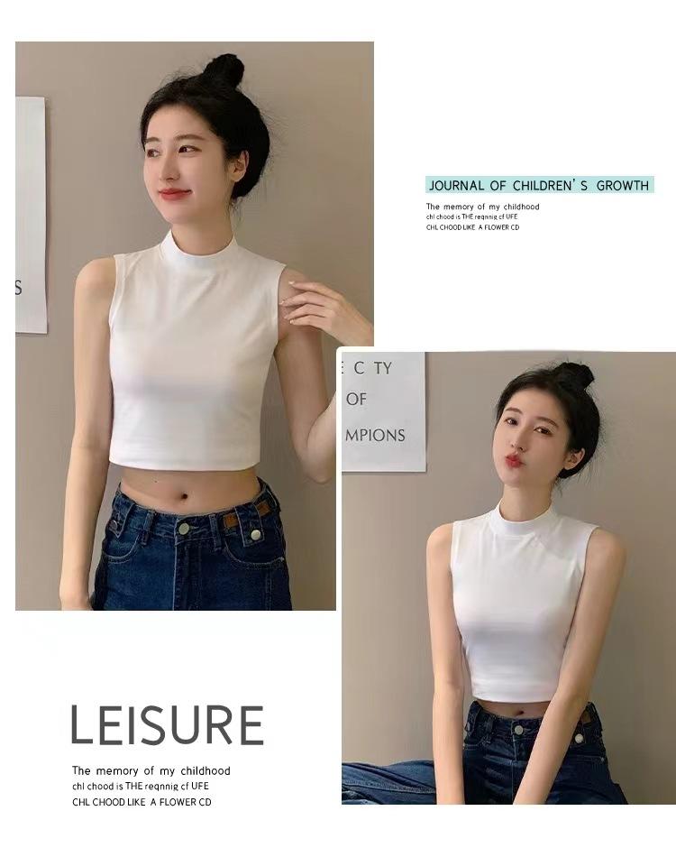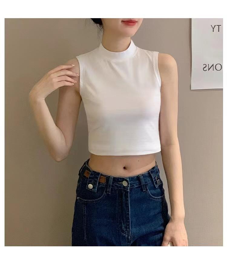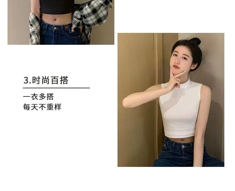 Compra Camisola pequeña sin mangas con cuello alto para mujer, estilo nuevo 2024, prenda exterior corta, cintura alta, cuello medio, tirantes, color negro. al por mayor en Joom.pro