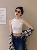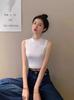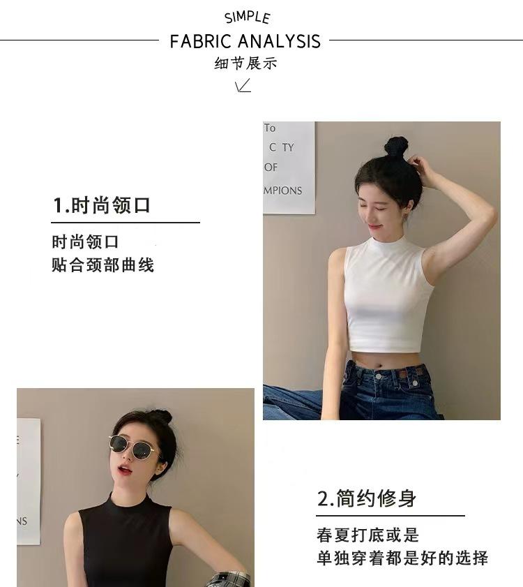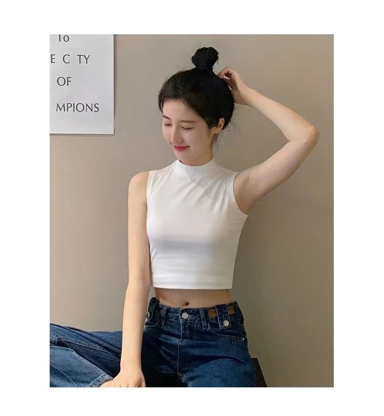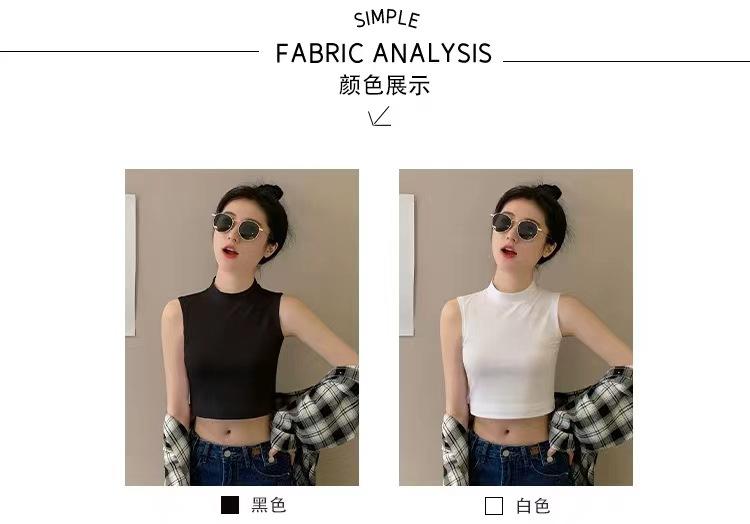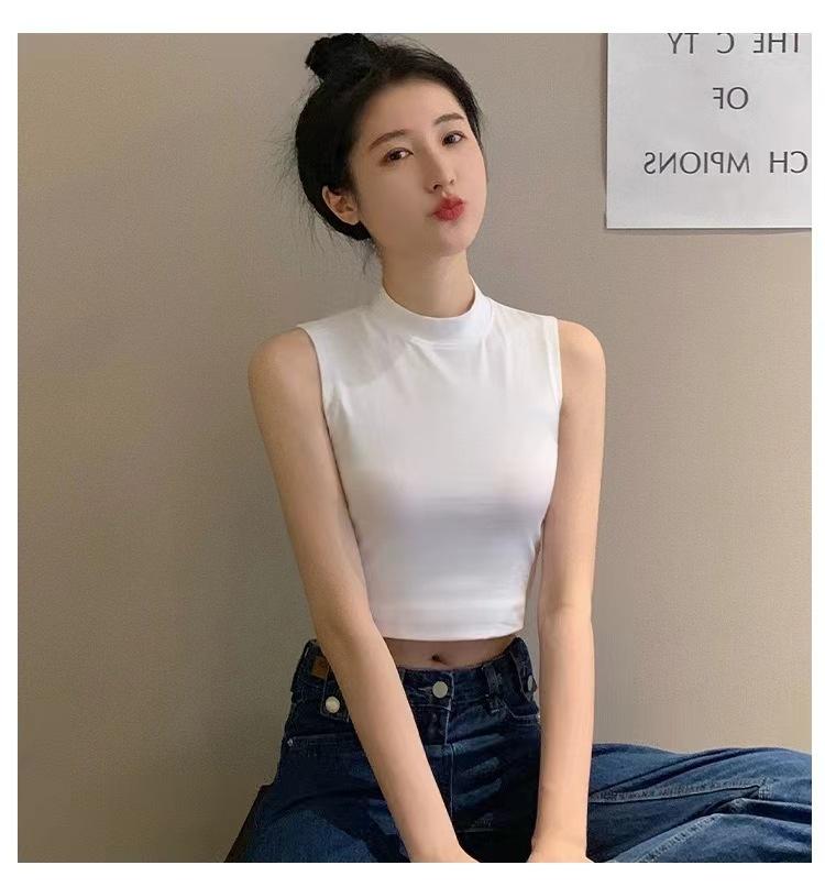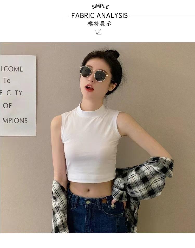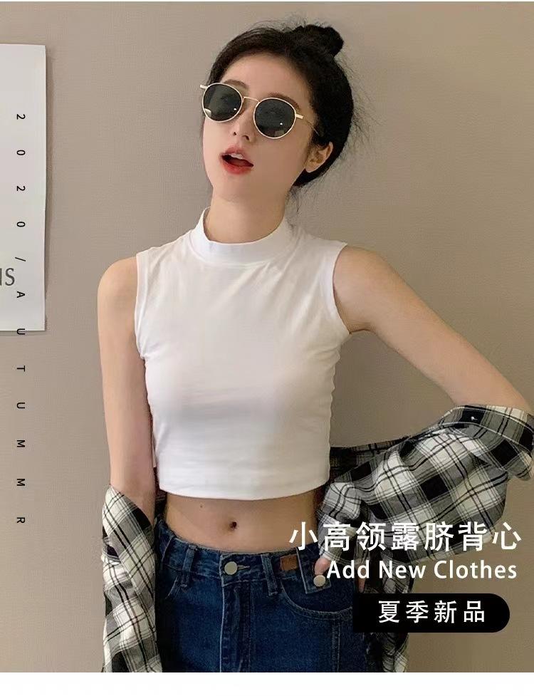 Compra Camisola pequeña sin mangas con cuello alto para mujer, estilo nuevo 2024, prenda exterior corta, cintura alta, cuello medio, tirantes, color negro. al por mayor en Joom.pro