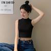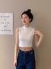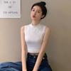 Camisola pequeña sin mangas con cuello alto para mujer, estilo nuevo 2024, prenda exterior corta, cintura alta, cuello medio, tirantes, color negro.