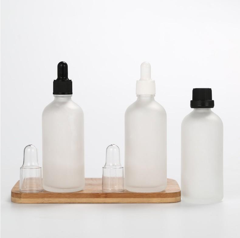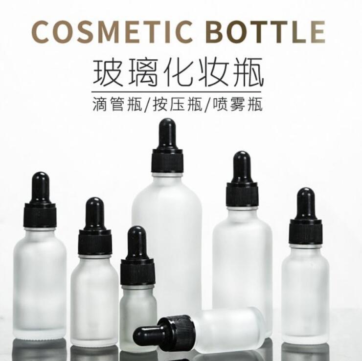 Venta al por mayor de fábrica, botella de aceite esmerilado de 10 ml y 30 ml, botella con gotero de goma, botella de vidrio para esencias, botella cosmética, subenvasado.