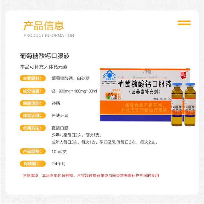 [Entrega en una sola pieza] Líquido oral de gluconato de calcio Sichuan Qi 10 ml * 12 piezas de suplemento de calcio