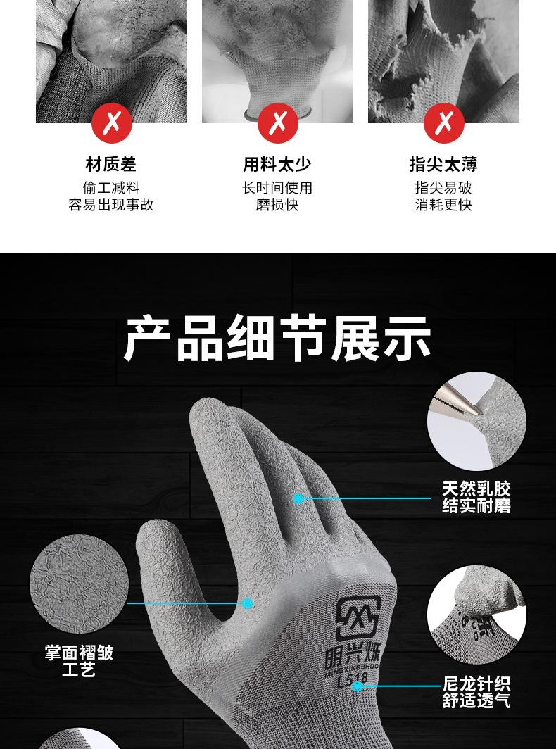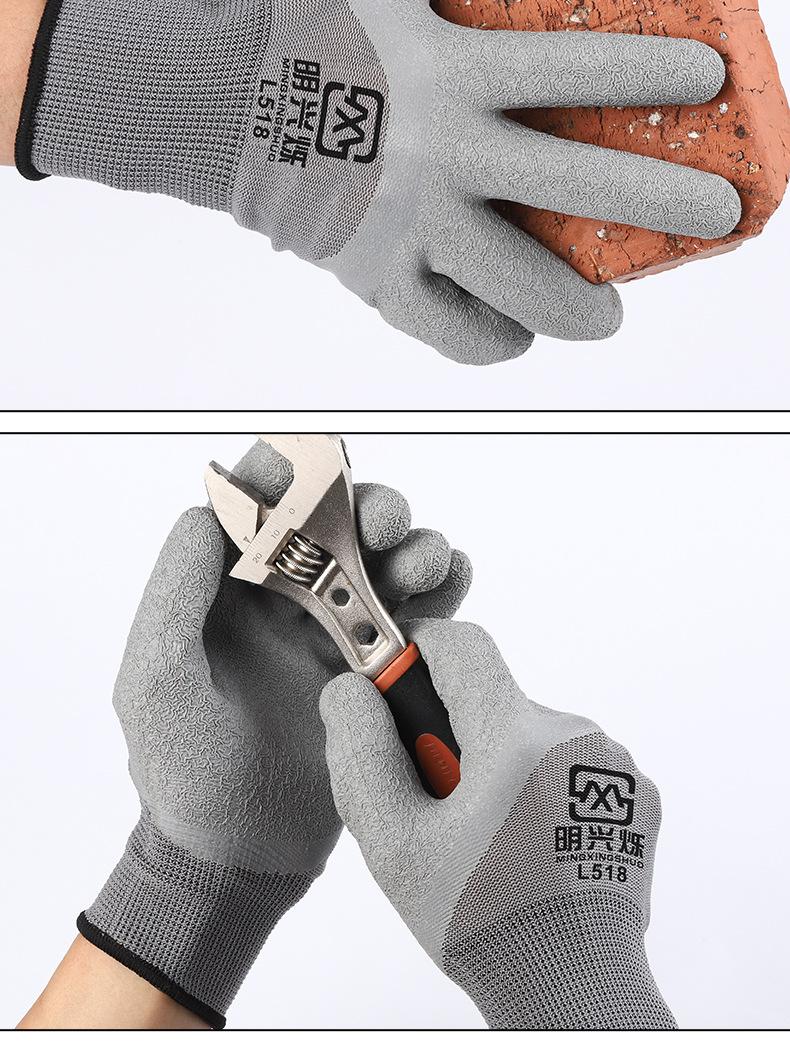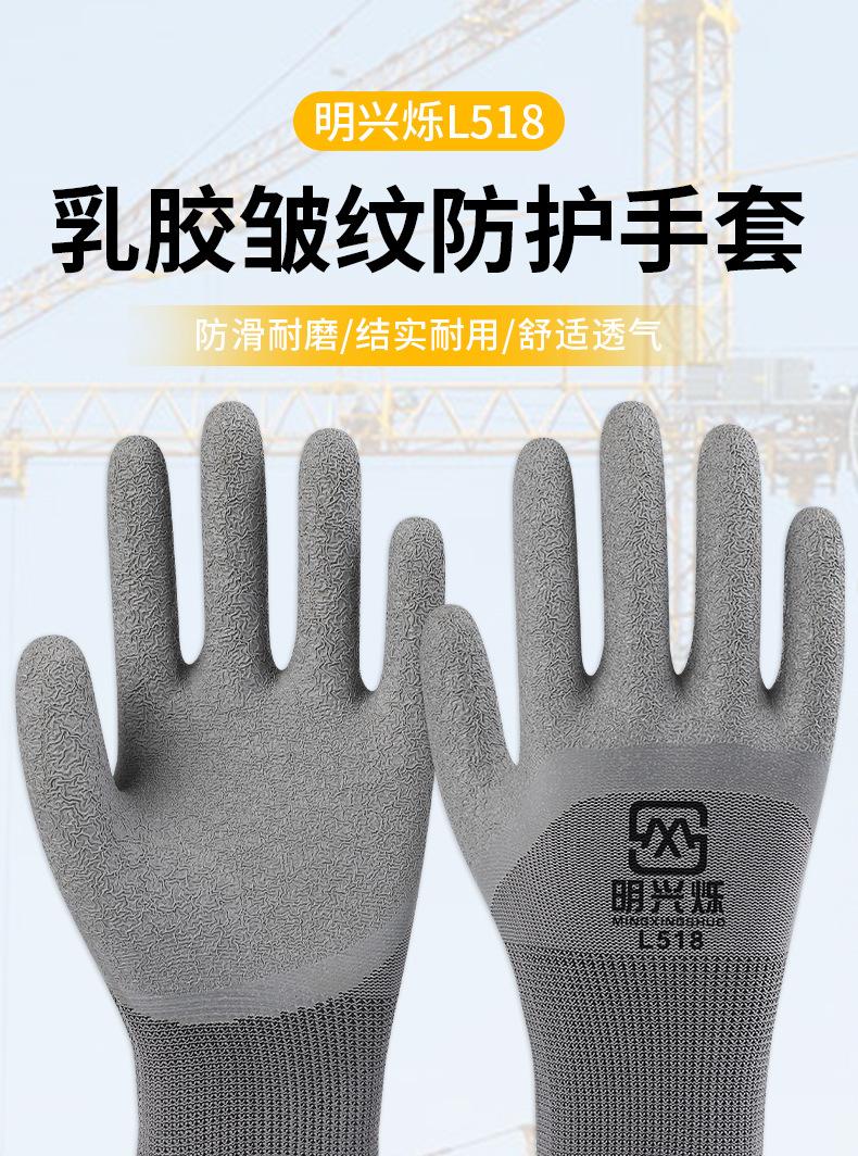 Guantes de trabajo de látex resistentes a las arrugas, gruesos, impermeables, transpirables, antideslizantes, de goma, de cuero, para trabajo en el lugar de trabajo, protección laboral.