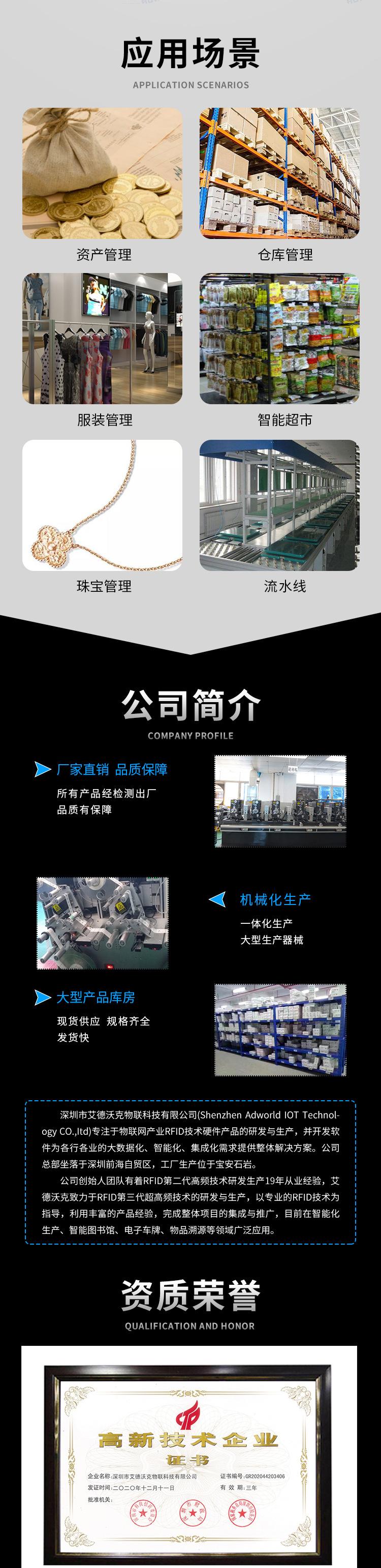 Nos especializamos principalmente en etiquetas electrónicas RFID y NFC, y ofrecemos personalización profesional. Ofrecemos diversas incrustaciones secas y húmedas, etiquetas blancas, etiquetas impresas y etiquetas electrónicas especiales, principalmente etiquetas electrónicas nuevas para comercio minorista, etiquetas electrónicas para bibliotecas, etiquetas electrónicas NFC anti-falsificación y trazabilidad, etiquetas electrónicas anti-metal y etiquetas electrónicas para pulseras. También podemos personalizarlas según las necesidades del cliente. Para más información, contacte con el servicio de atención al cliente.