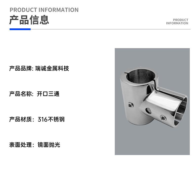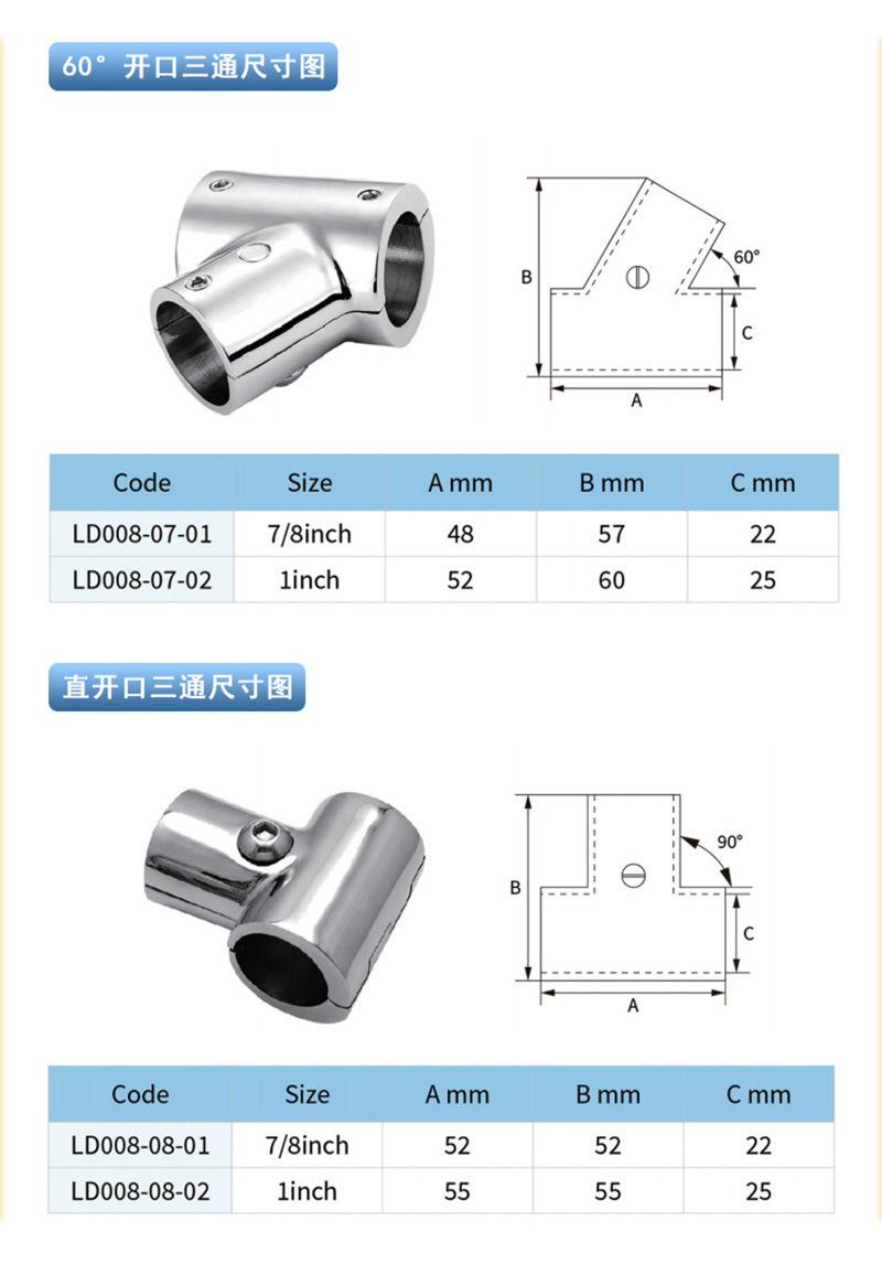 Accesorios para yates con herrajes marinos y tes rectas abiertas, intubación de toldo 316, tes rectas separables de acero inoxidable