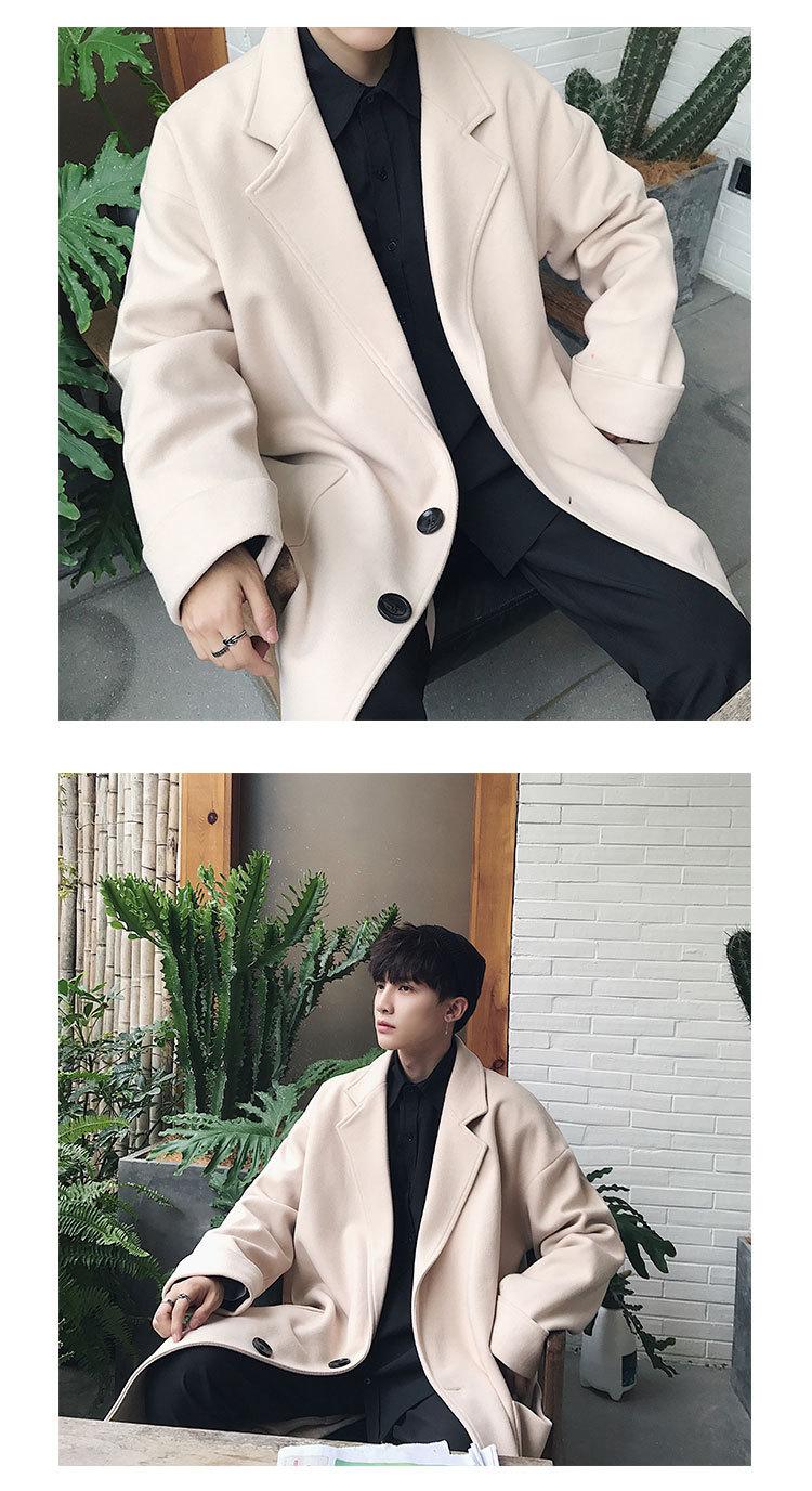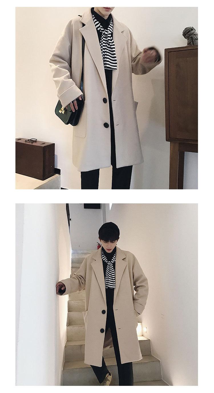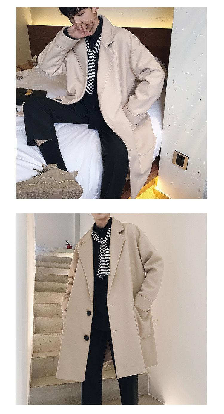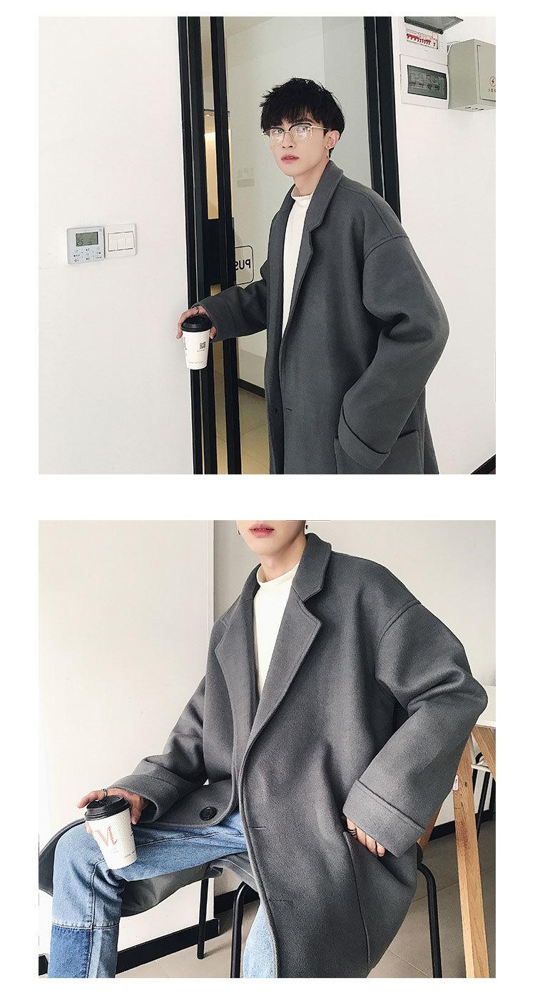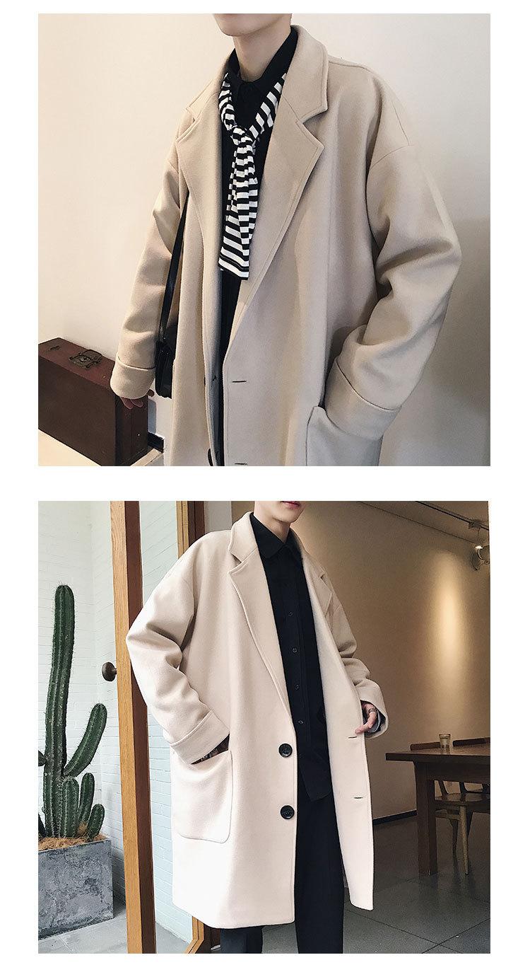 Abrigo de lana para hombre, estilo coreano de invierno, elegante, grueso, cálido, de longitud media, holgado.