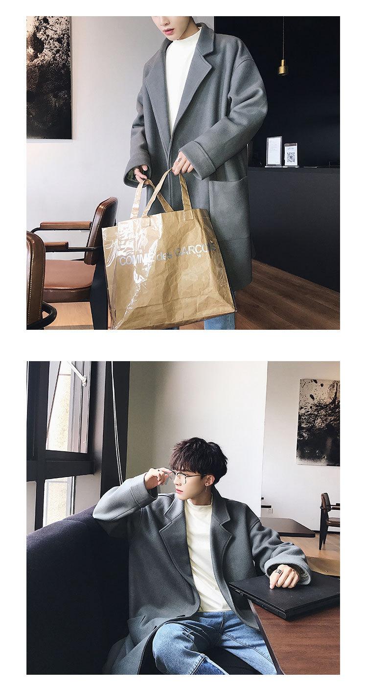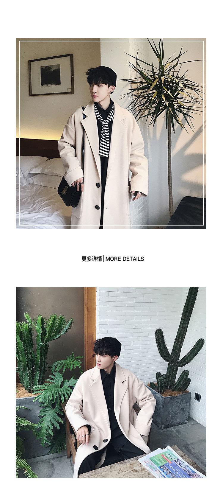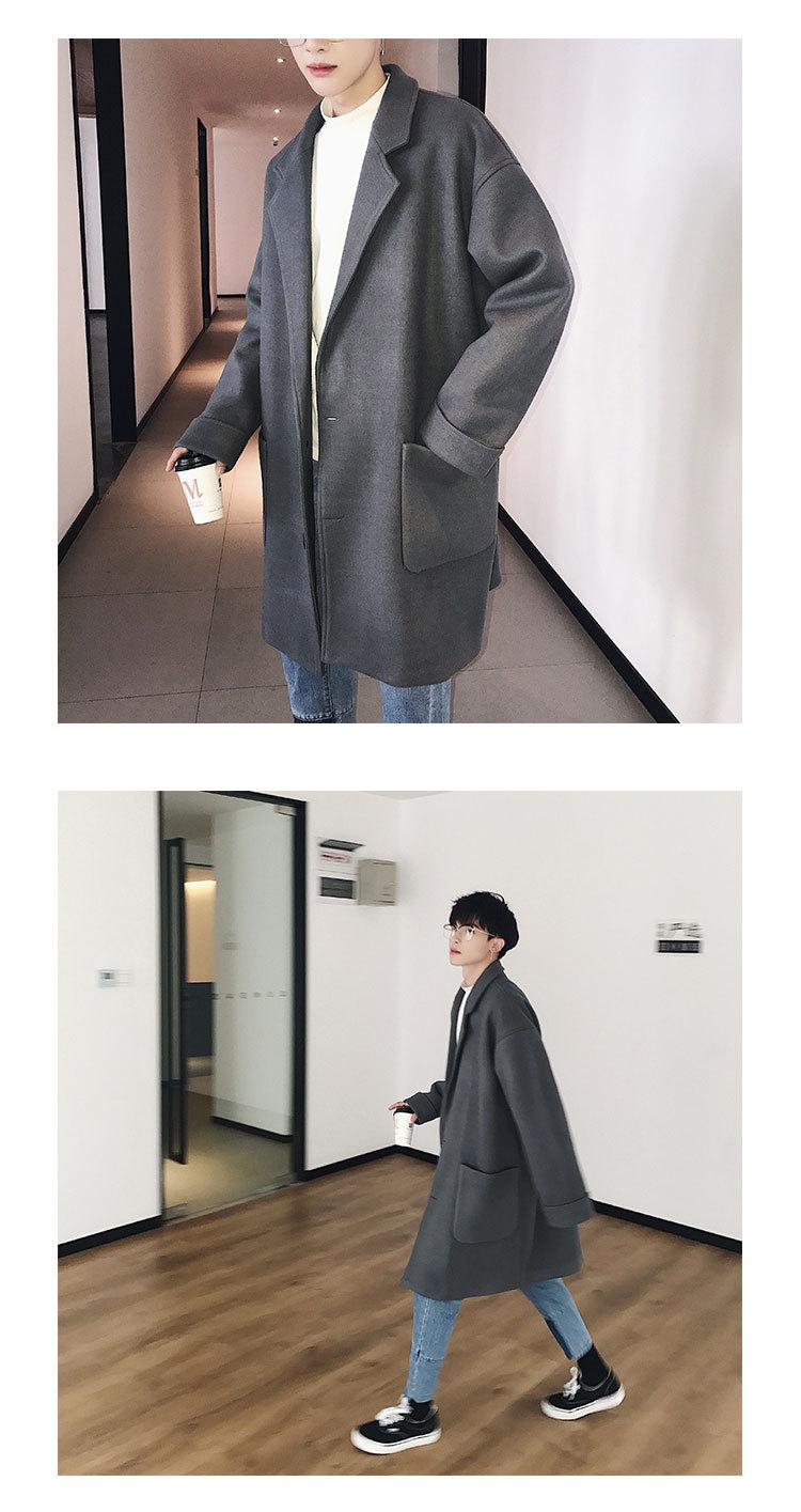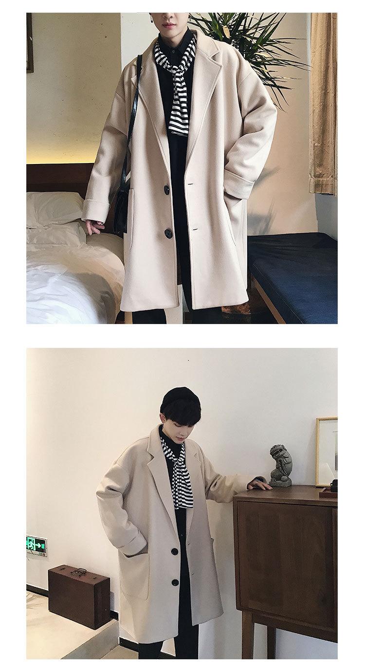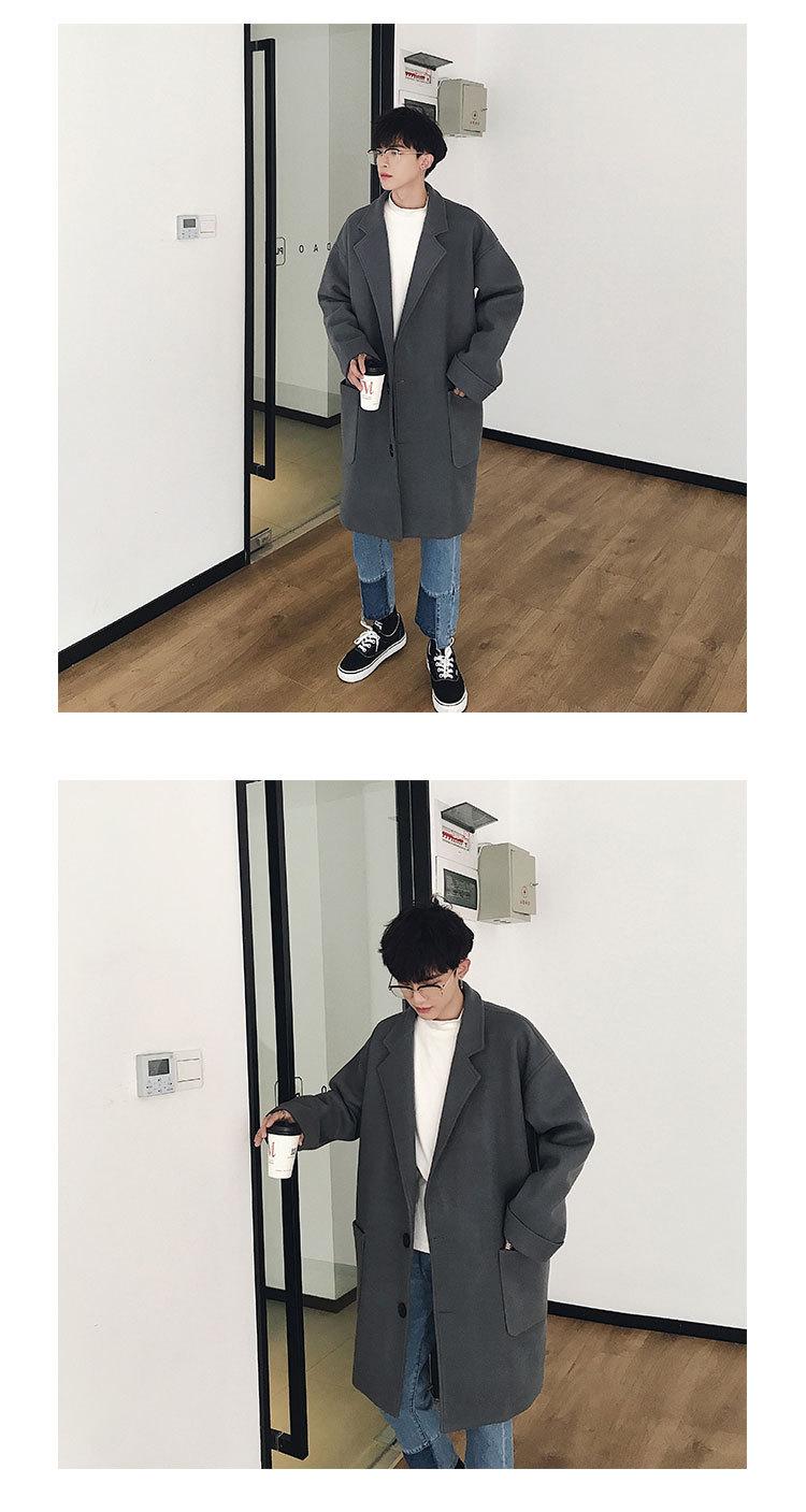 Abrigo de lana para hombre, estilo coreano de invierno, elegante, grueso, cálido, de longitud media, holgado.