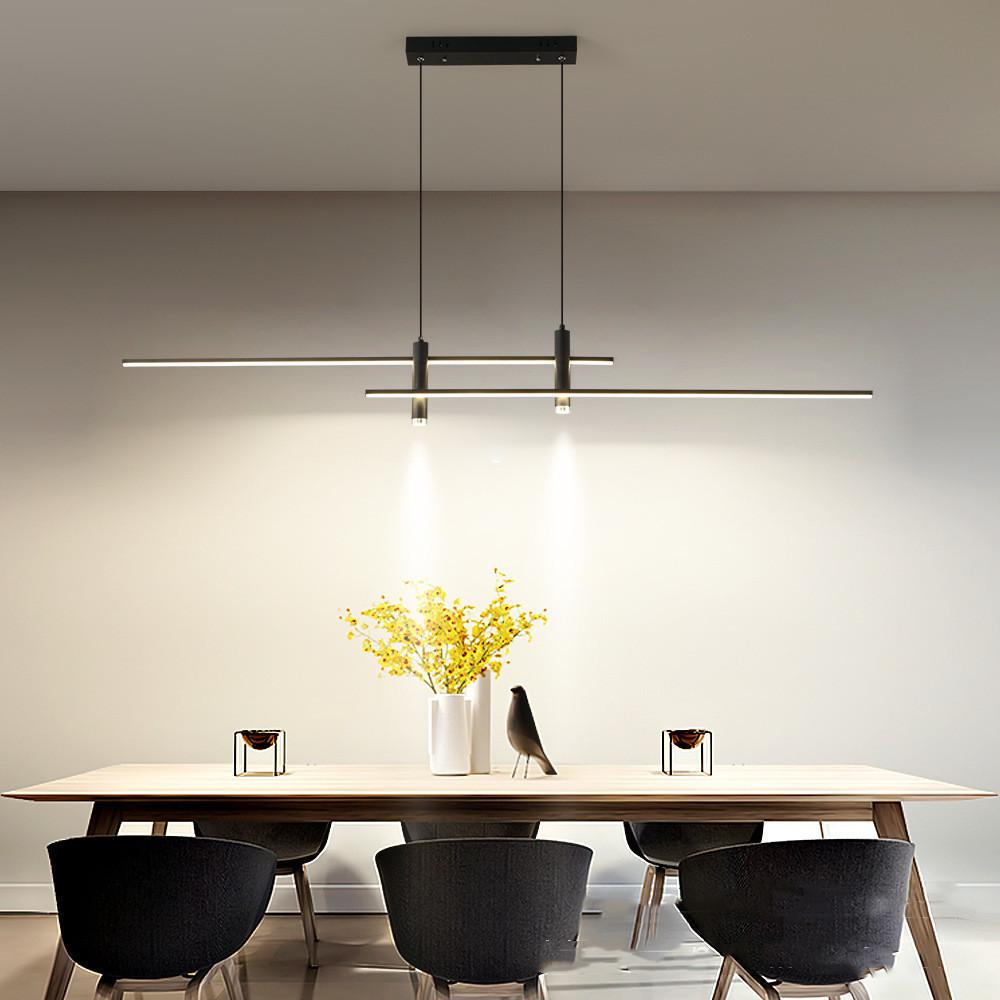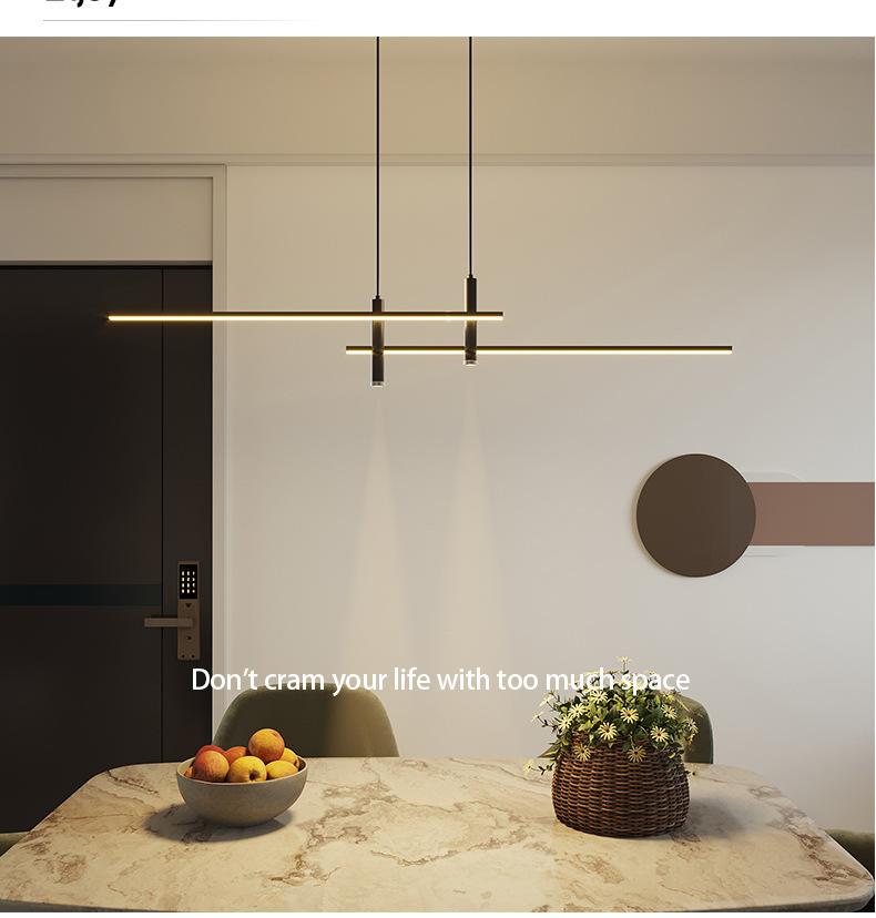 Lámpara de araña de comedor minimalista nórdica, creativa y larga, moderna, minimalista, con diseño de barra y mesa de comedor, iluminación de aluminio
