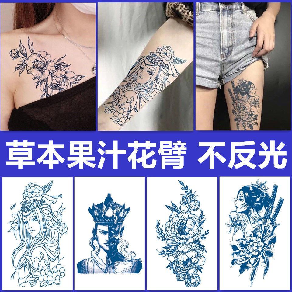 Tatuajes semipermanentes de jugo herbal de medio brazo para hombres y mujeres, impermeables, de simulación social, no reflectantes, de flores, para brazo y pierna