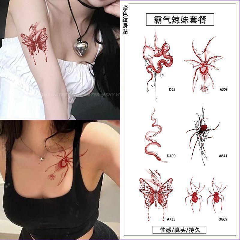 Tatuaje Adhesivo de Color Explosivo Mariposa Sexy Chica Caliente Alto Valor No Reflectante Figura Grande Brazo Clavícula Lavable Mujeres