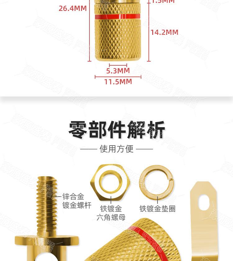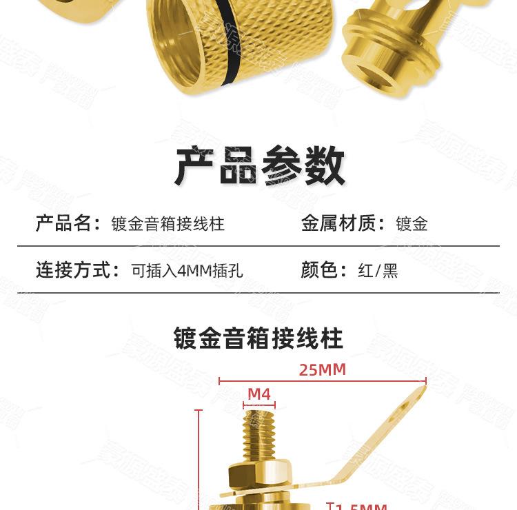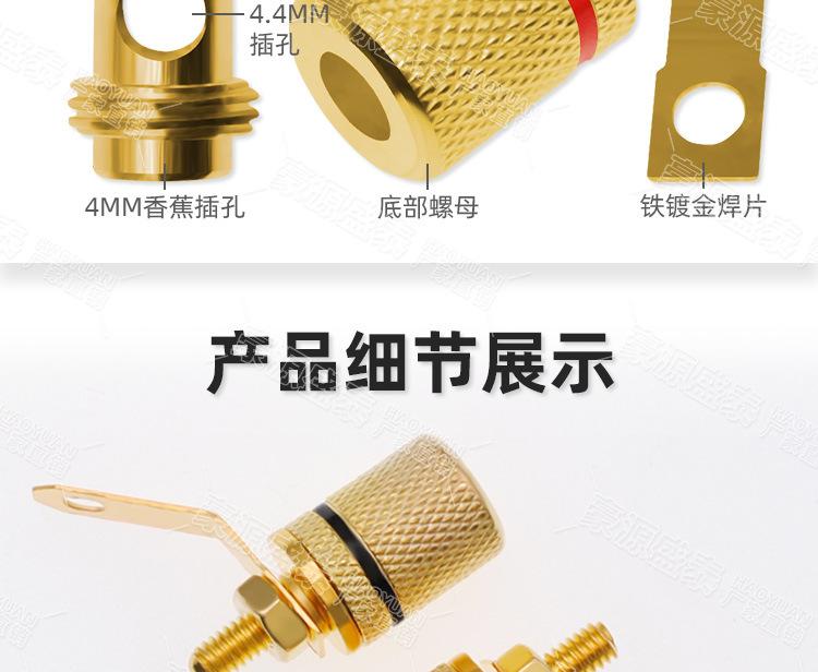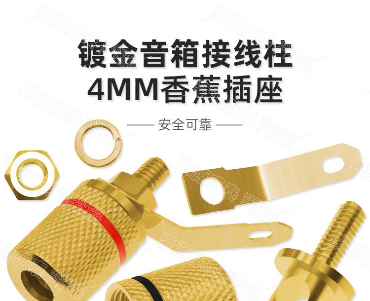Terminal de amplificador de potencia chapado en oro, conector banana de 4 mm, conector de altavoz, conector Budweiser