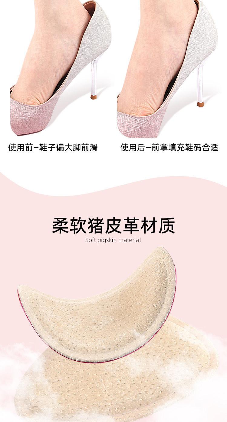 Almohadilla de palma delantera de piel de cerdo engrosada suave transpirable invisible media talla almohadilla antideslizante amortiguadora plantilla para tacón alto almohadilla para suela