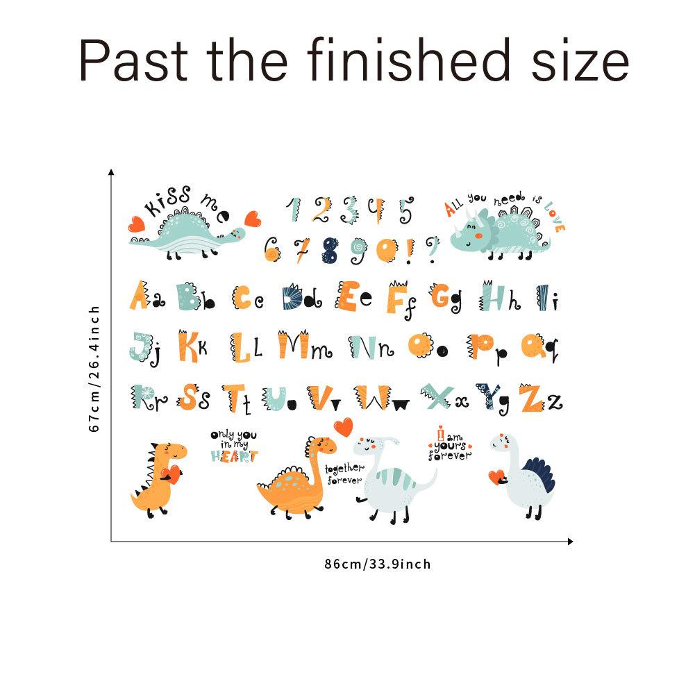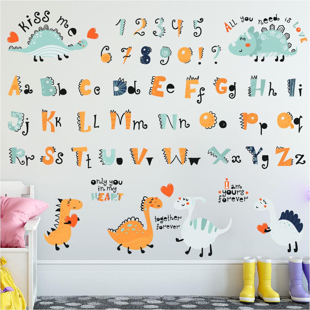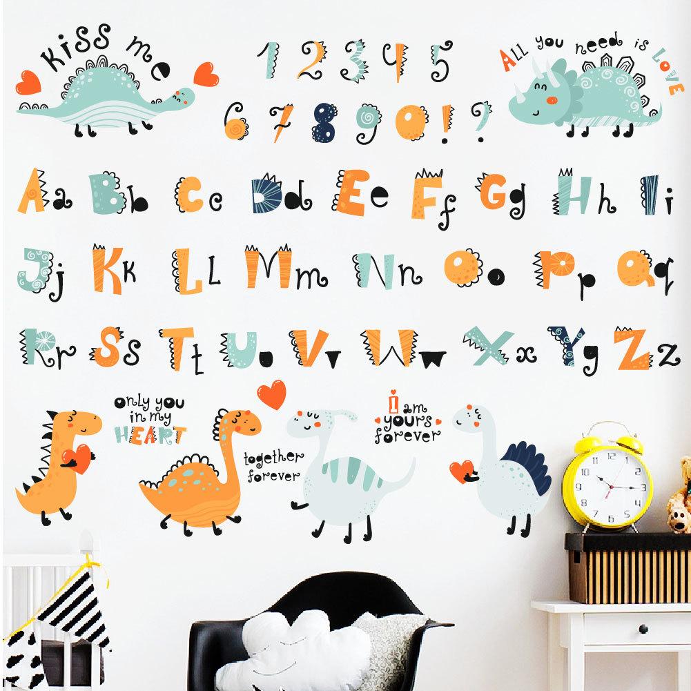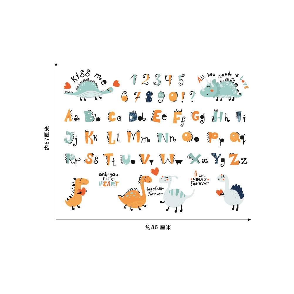 Pegatinas de letras de dinosaurios de dibujos animados para la habitación de los niños, pegatinas decorativas de pared para la mesita de noche, pegatinas digitales de educación temprana para jardín de infantes